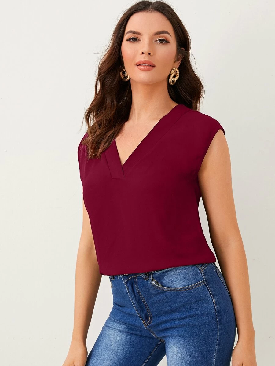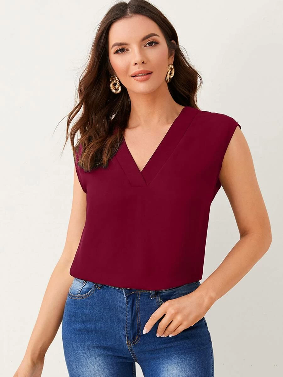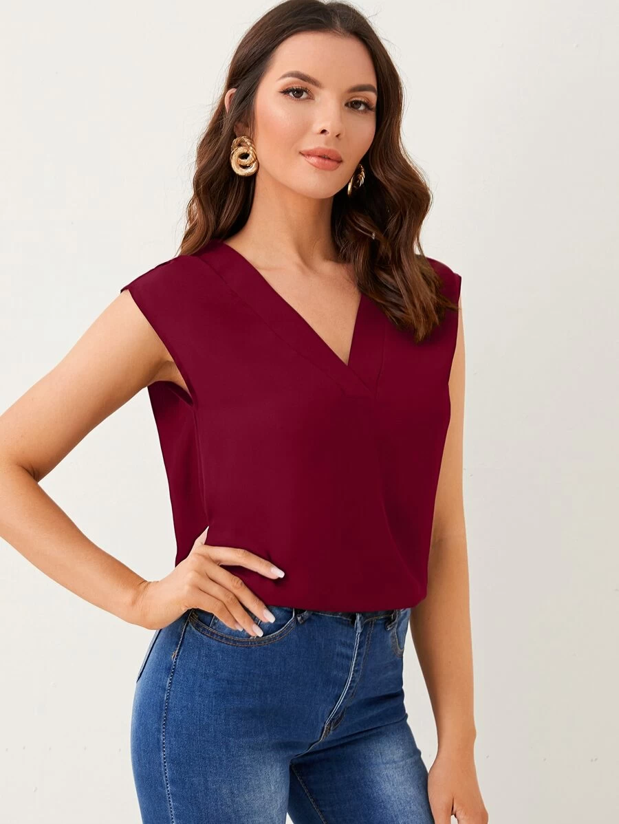 Top unicolor escote V