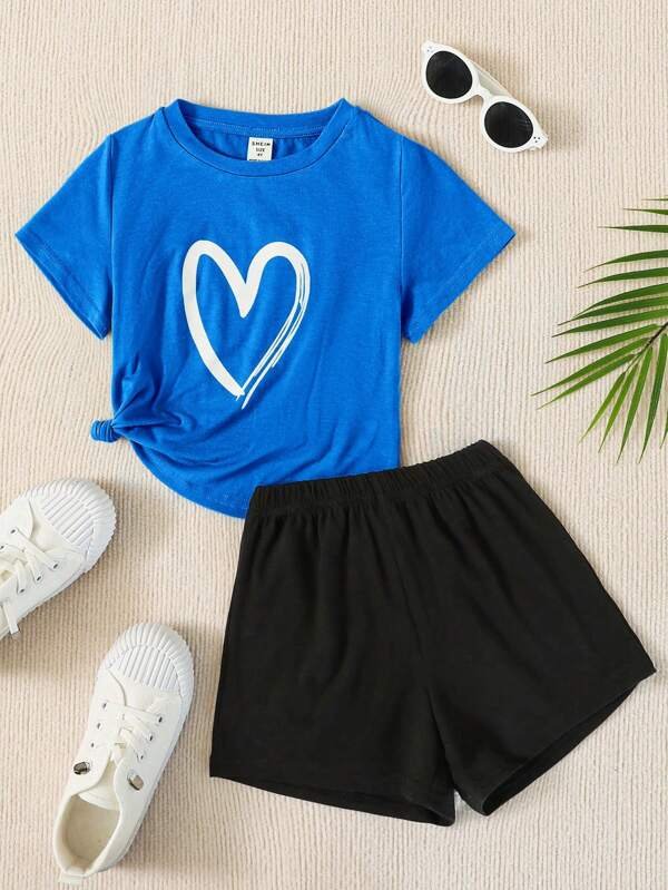 Top unicolor para ni?as peque?as y falda con dobladillo con volantes y estampado floral