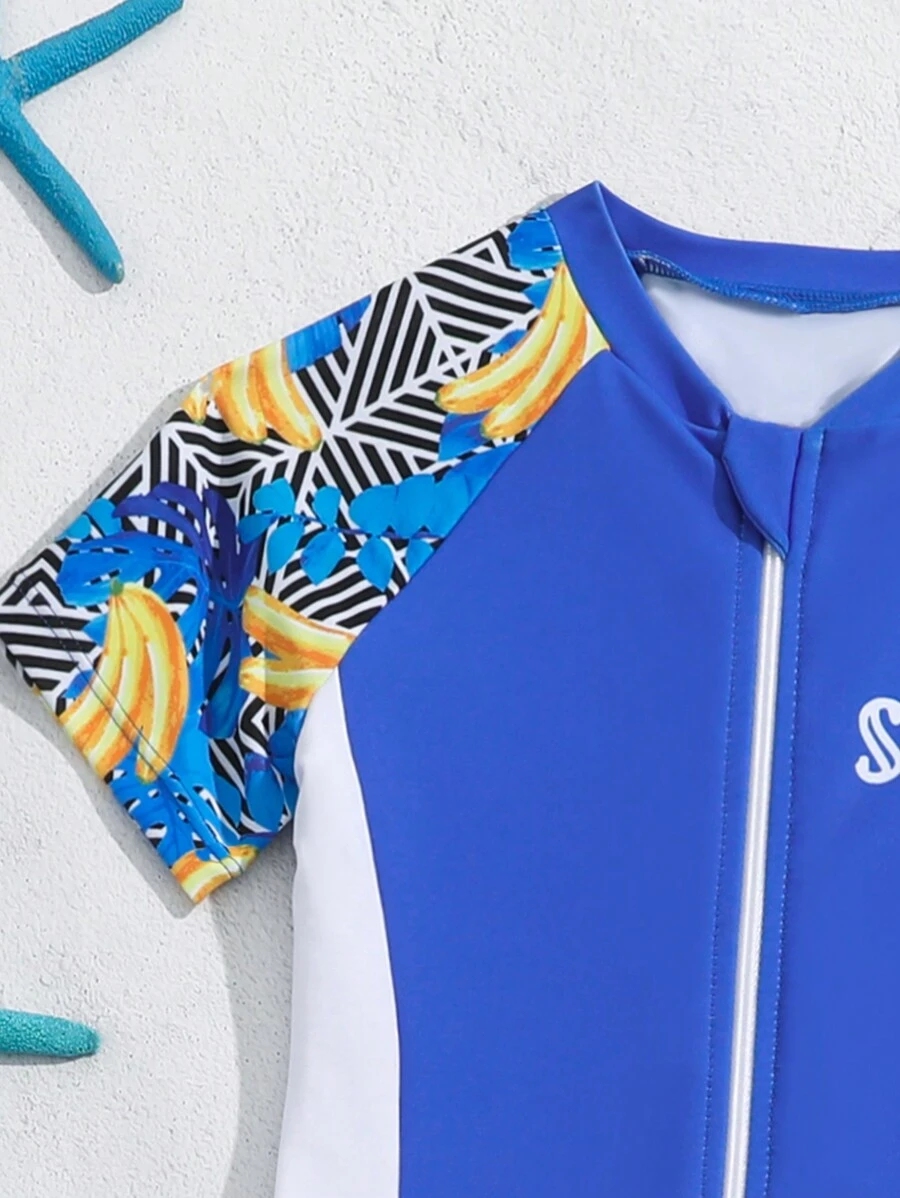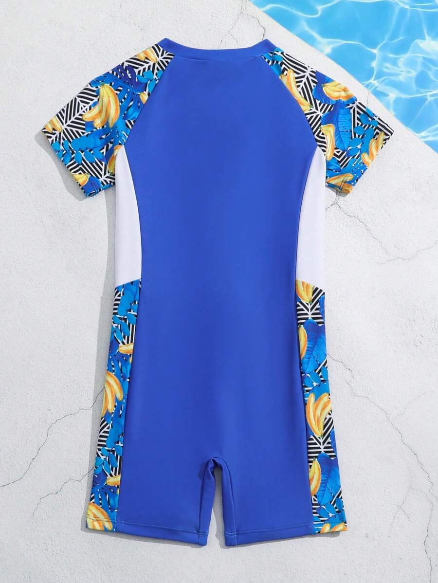 Traje De Ba?o De Una Sola Pieza Con Estampado Tropical Para Chico Joven