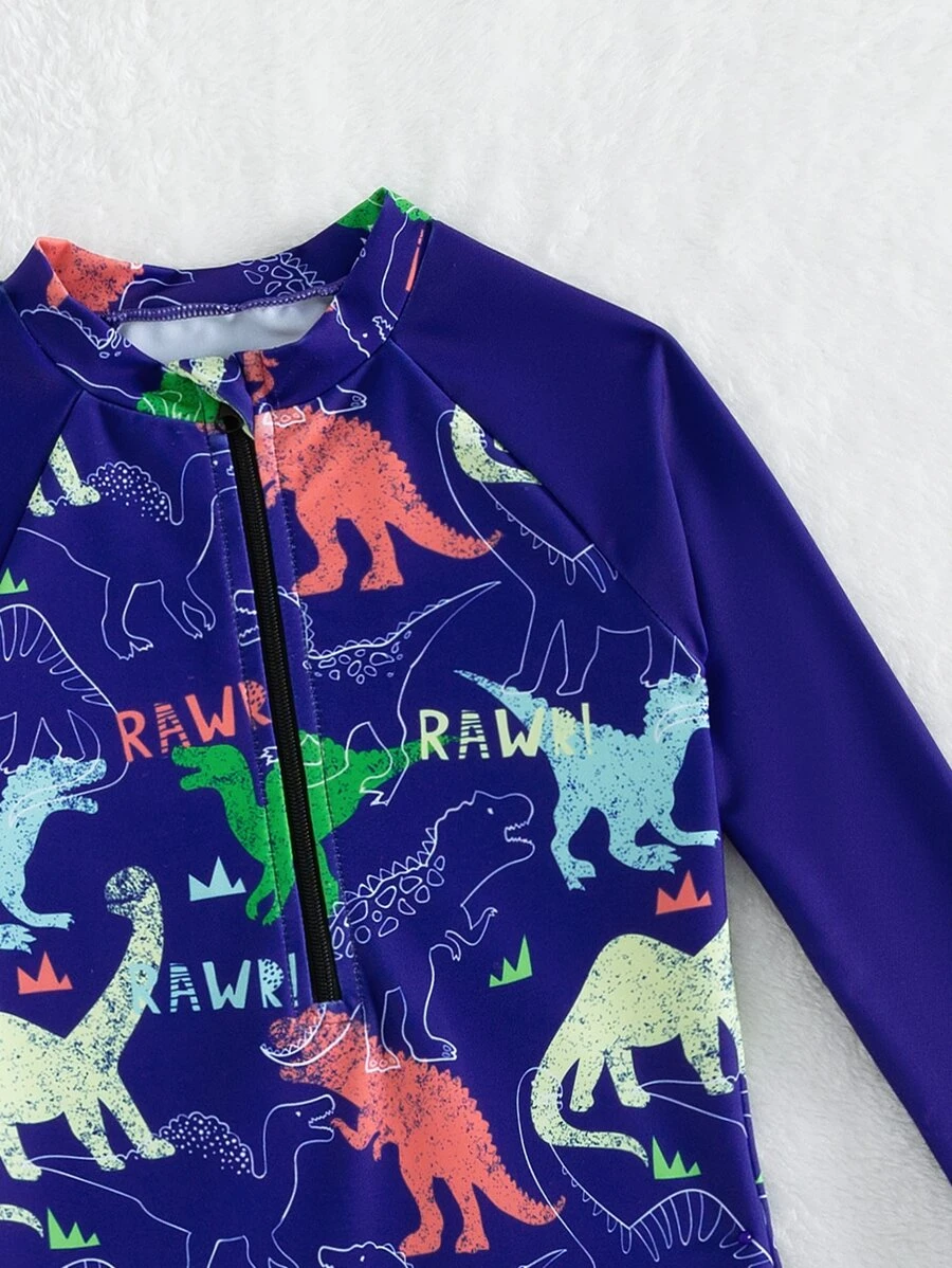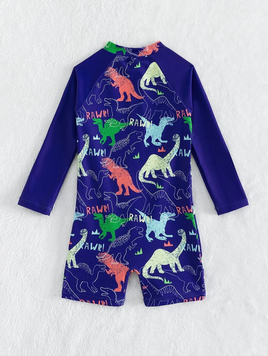 Traje De Ba?o Ni?o Una Pieza Con Estampado De Dinosaurio Con Cierre Frontal
