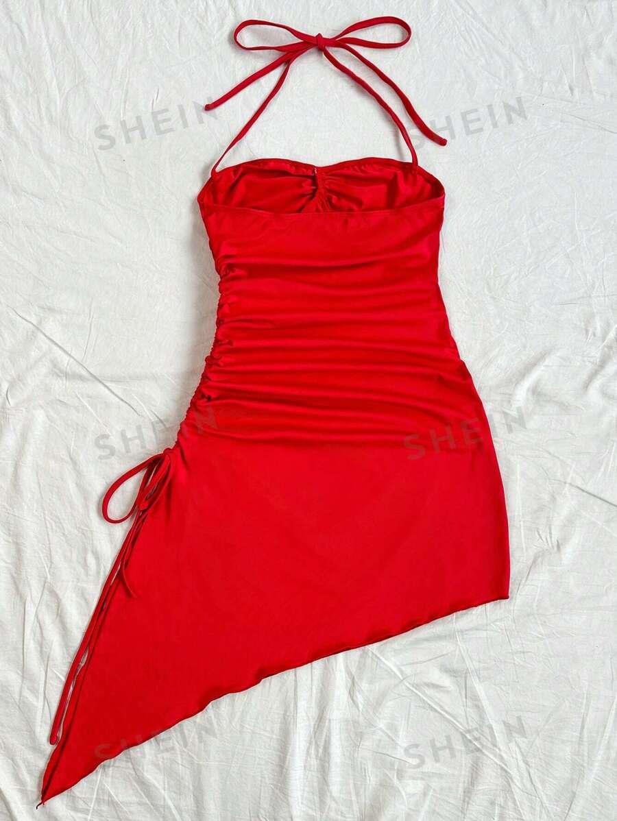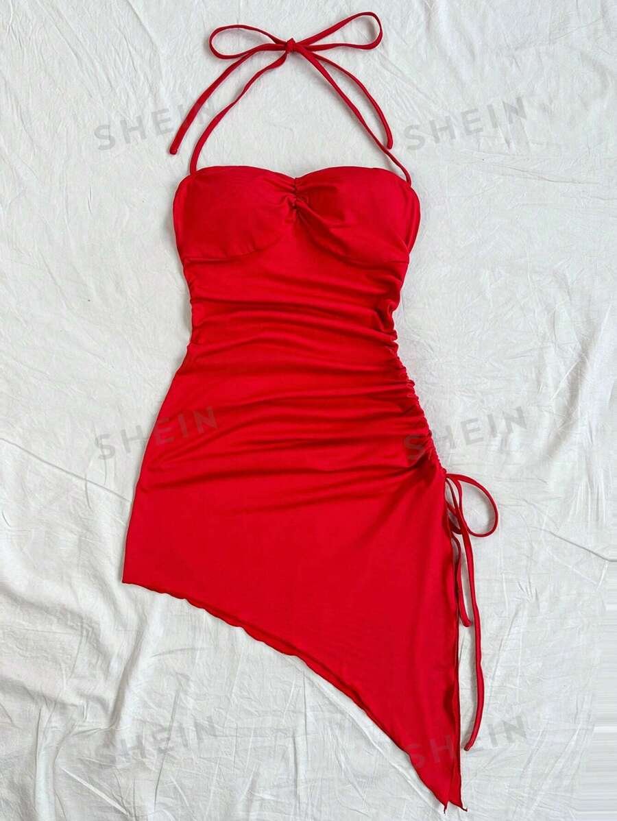 Vestido Ajustado Con Cuello Halter Y Cordón