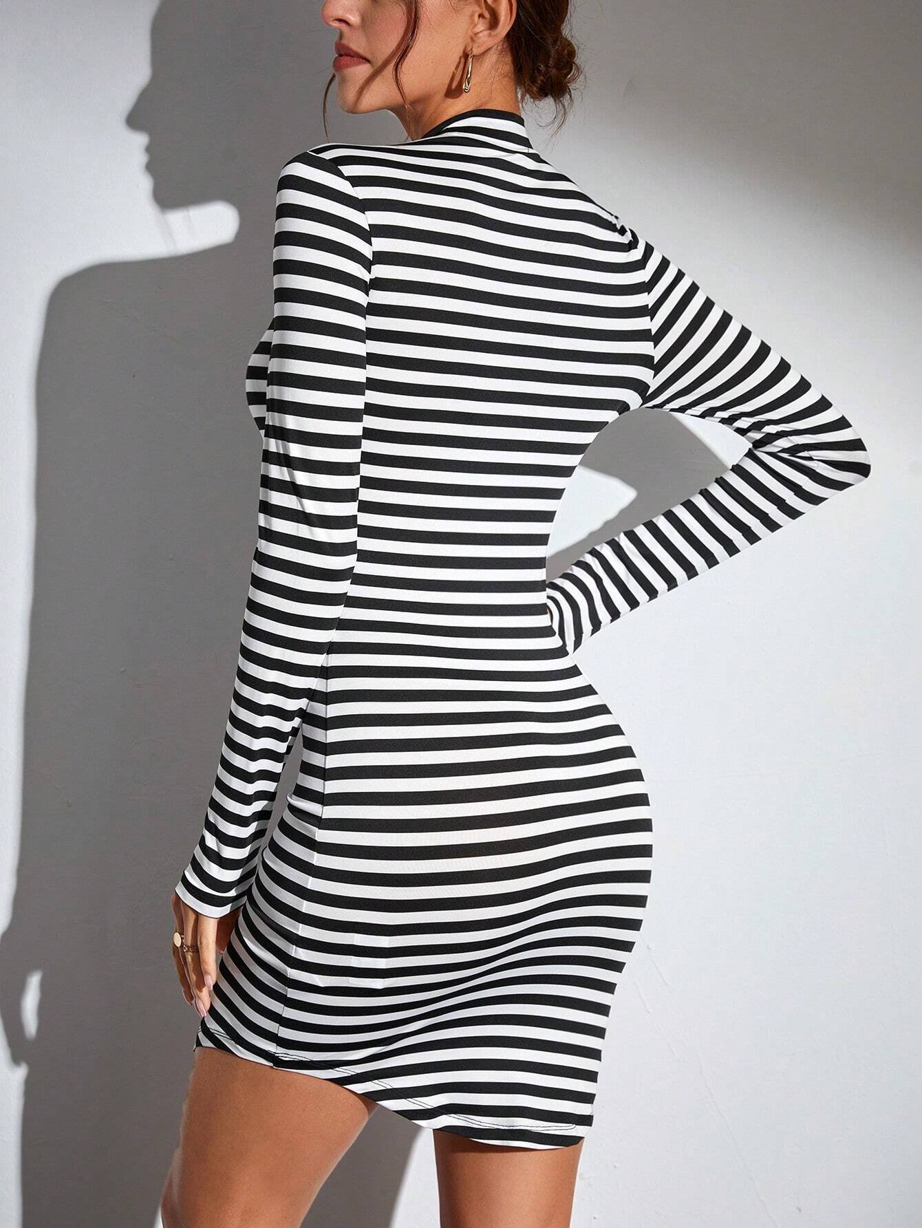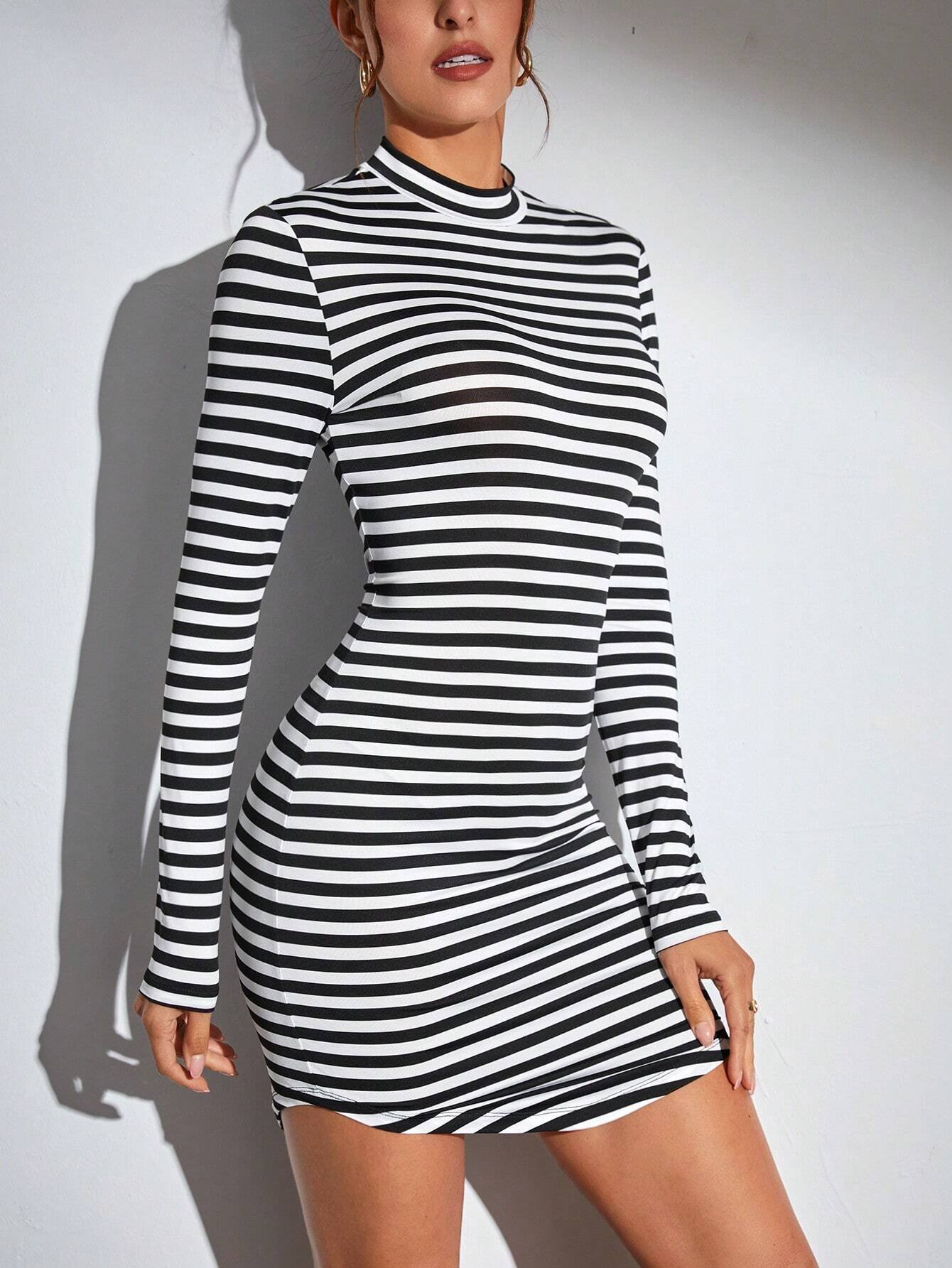Vestido ajustado con estampado de rayas de cuello alto