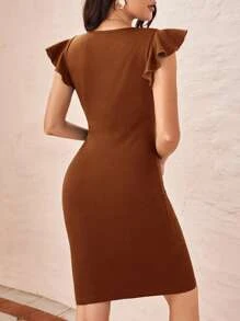 Vestido ajustado de cuello cruzado ribete con fruncido