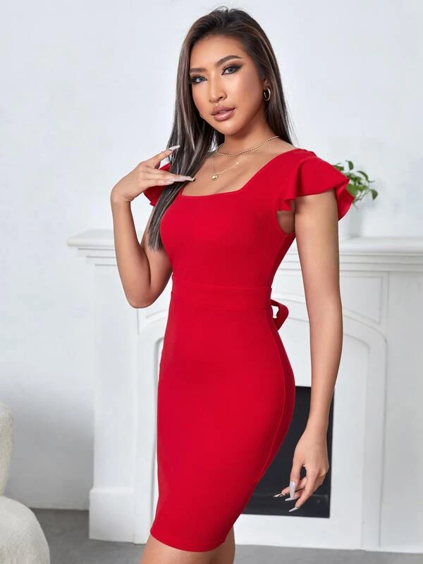 Producto anterior Siguiente producto Vestido ajustado de espalda abierta con nudo de manga con volante de cuello cuadrado SKU: sw2112235011064868 Categoría: Vestidos Este producto no está disponible porque no quedan existencias. Descripción Descripción