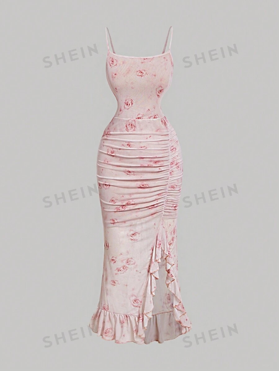 Vestido ajustado de malla fruncida con hombros descubiertos