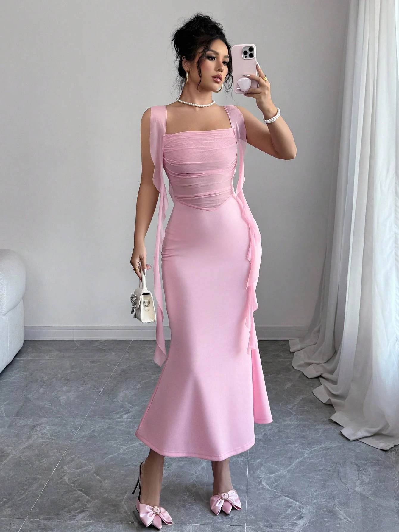 Vestido ajustado y elegante de color rosa romántico con paneles