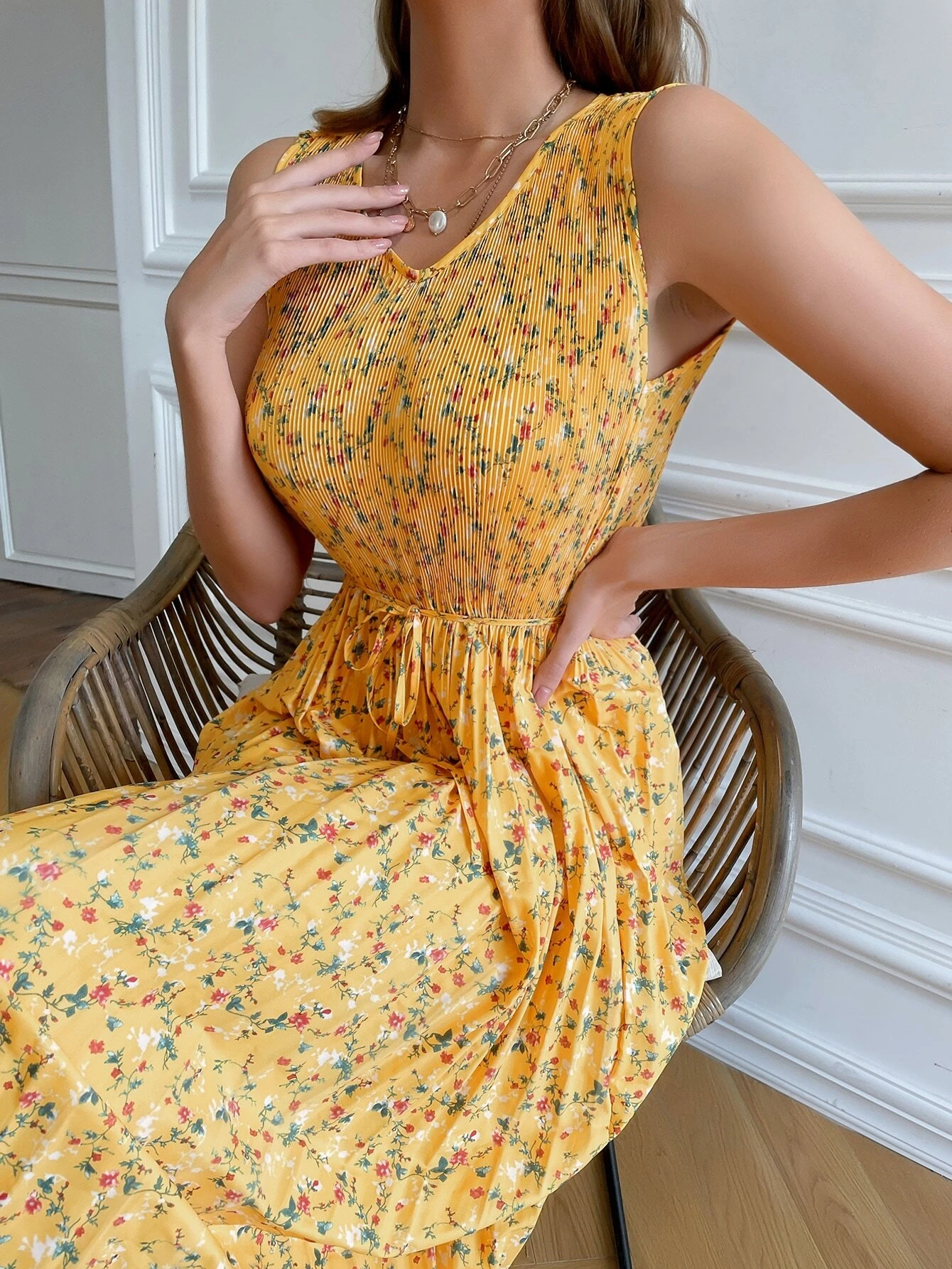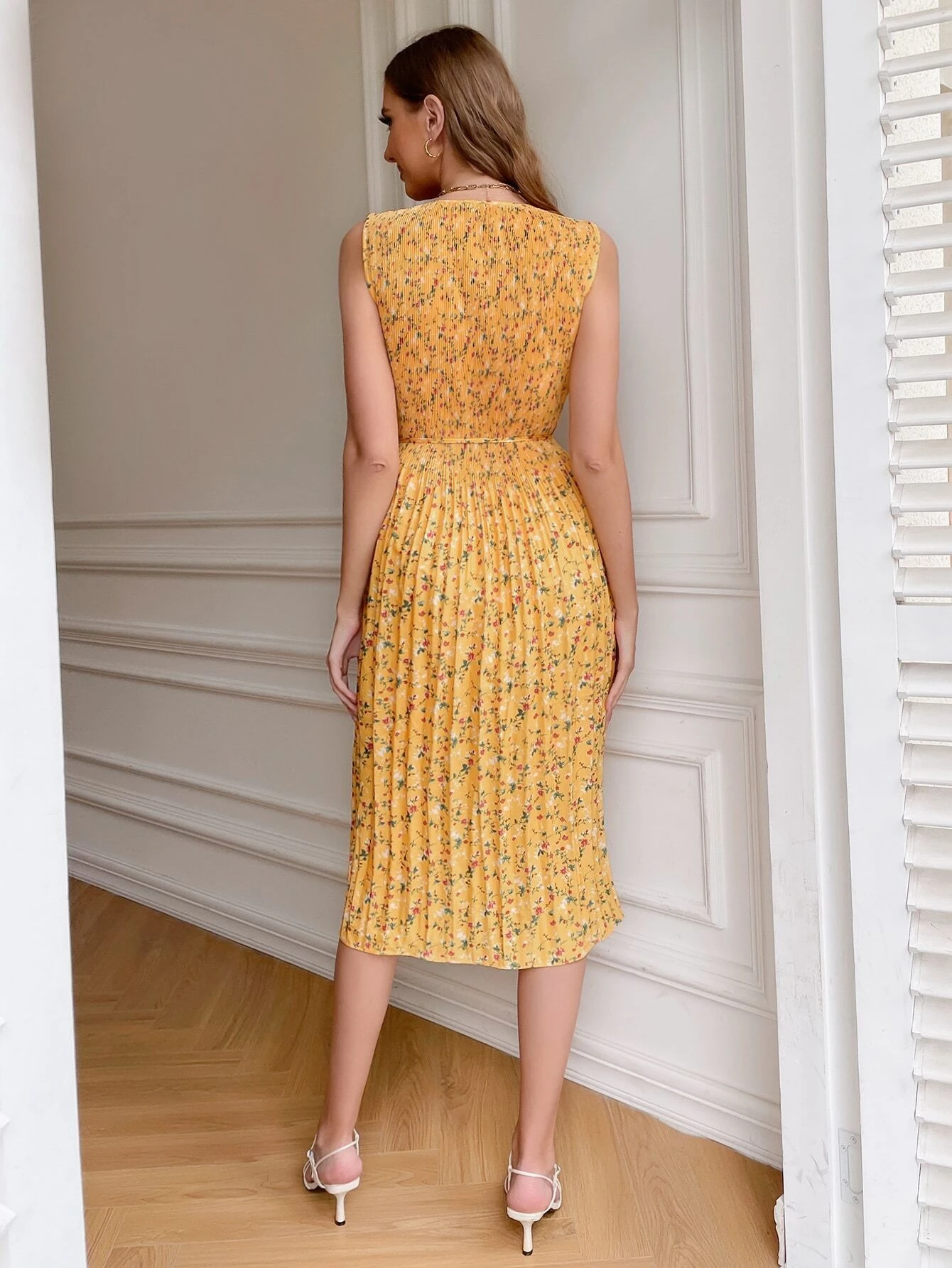 Vestido bajo fruncido floral