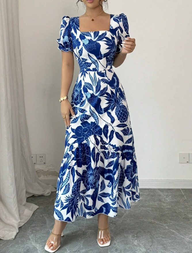 Vestido casual con cuello cuadrado, manga corta
