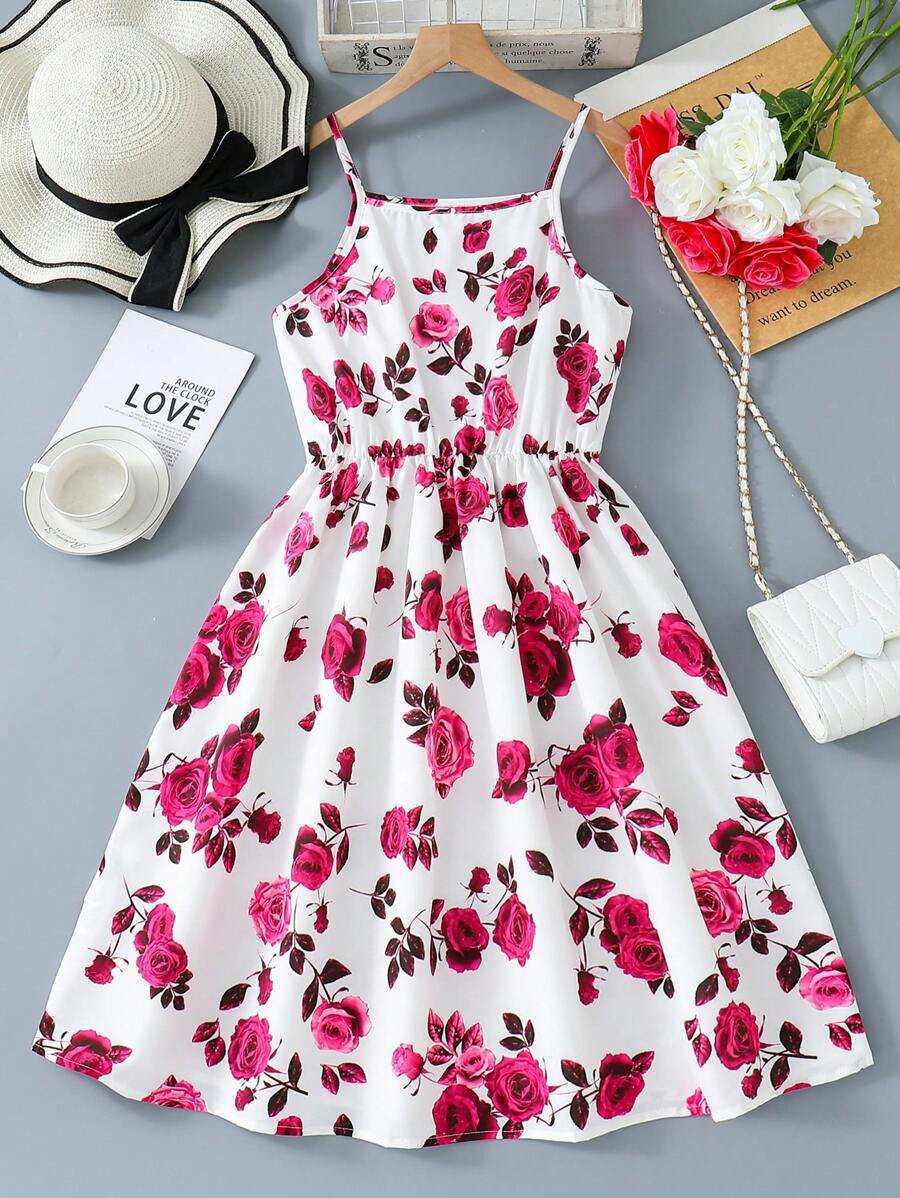 Vestido casual de l?nea A de mangas cortas con escote en V y estampado floral tejido para adolescente
