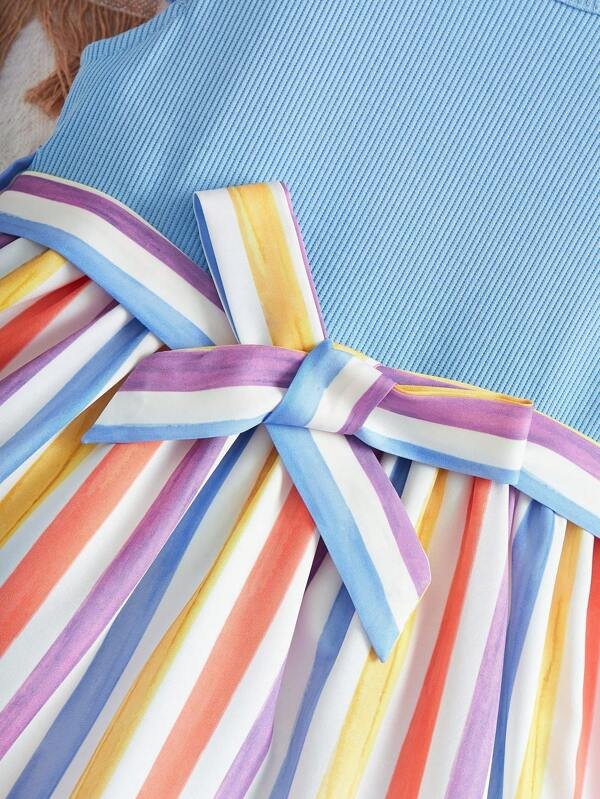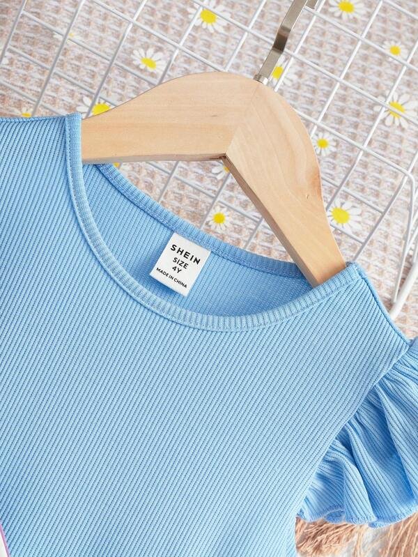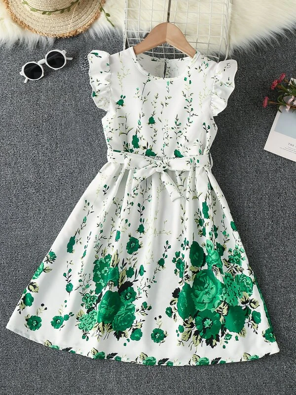 Vestido Casual De Ni?as Peque?as Con Mangas Voladoras Y Manga Corta
