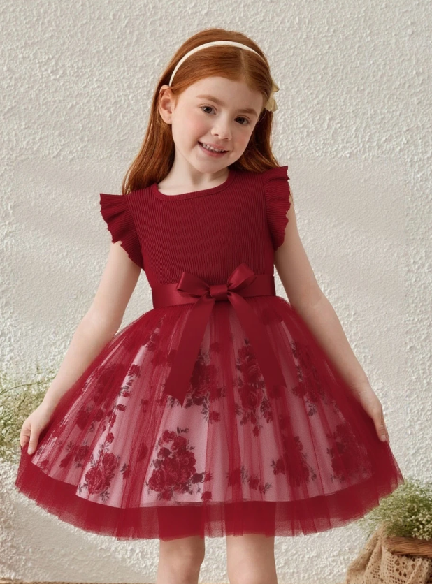 Vestido casual de verano para niñas de unicolor y diseño dulce de manga abullonada