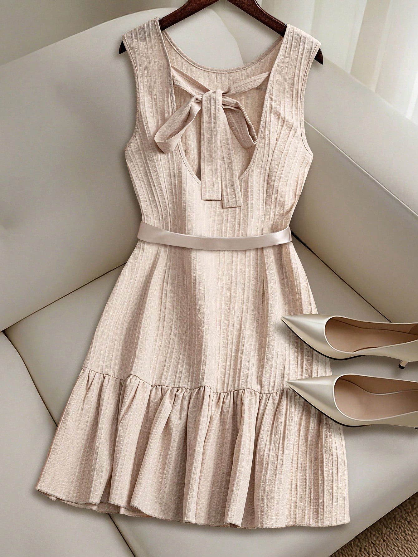 Vestido casual mini de mujer de verano con cuello redondo tejido