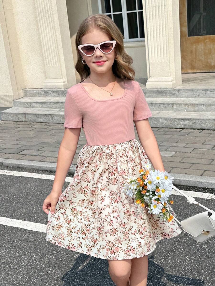 Vestido casual para niña preadolescente con cuello redondo