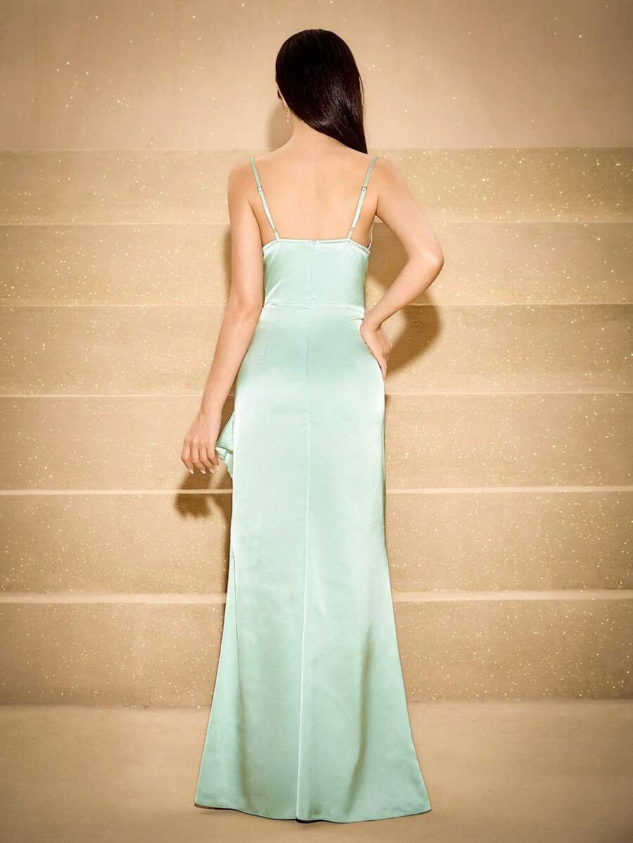 Vestido con camisola de satén, volantes en la cintura y abertura