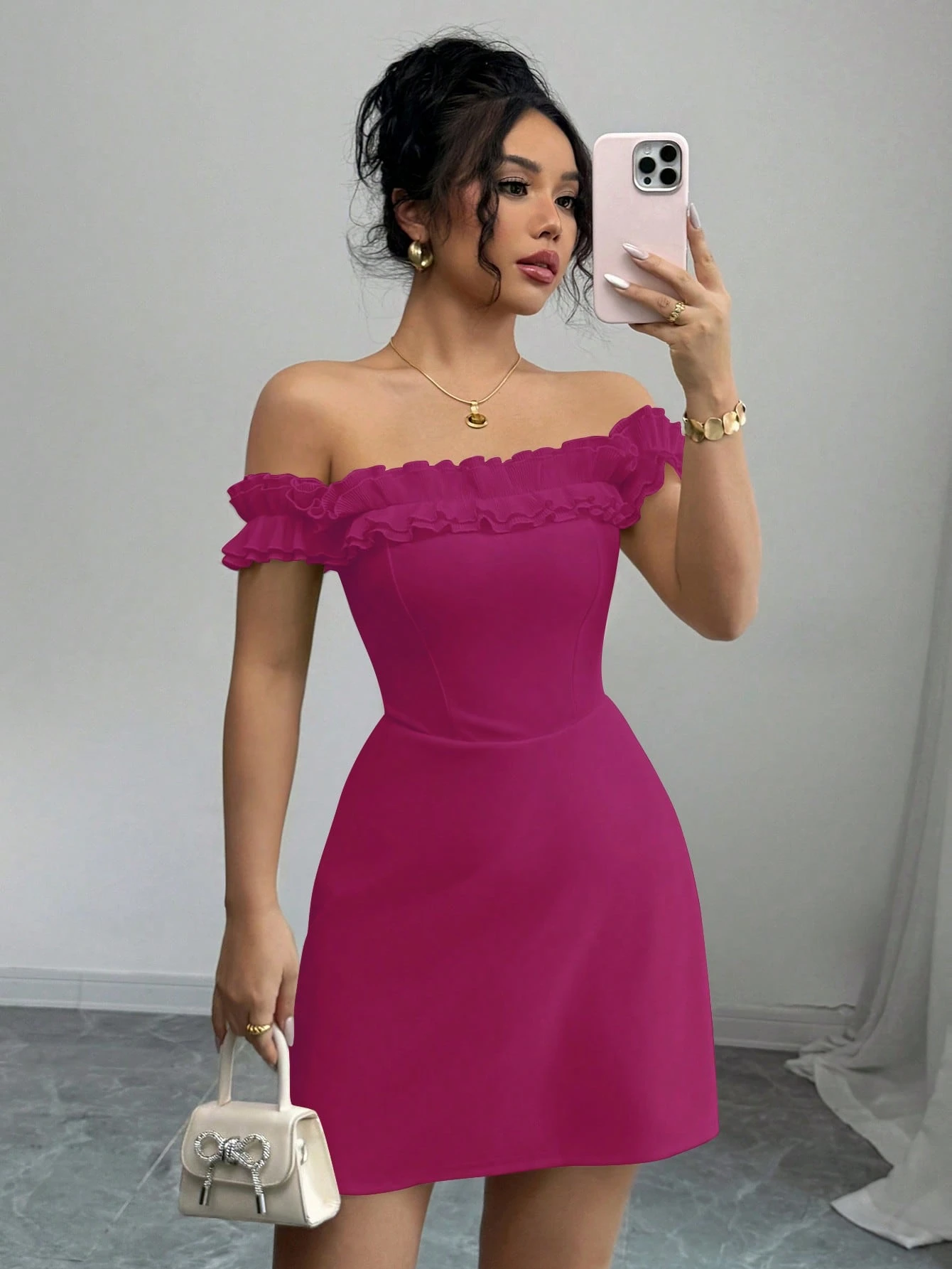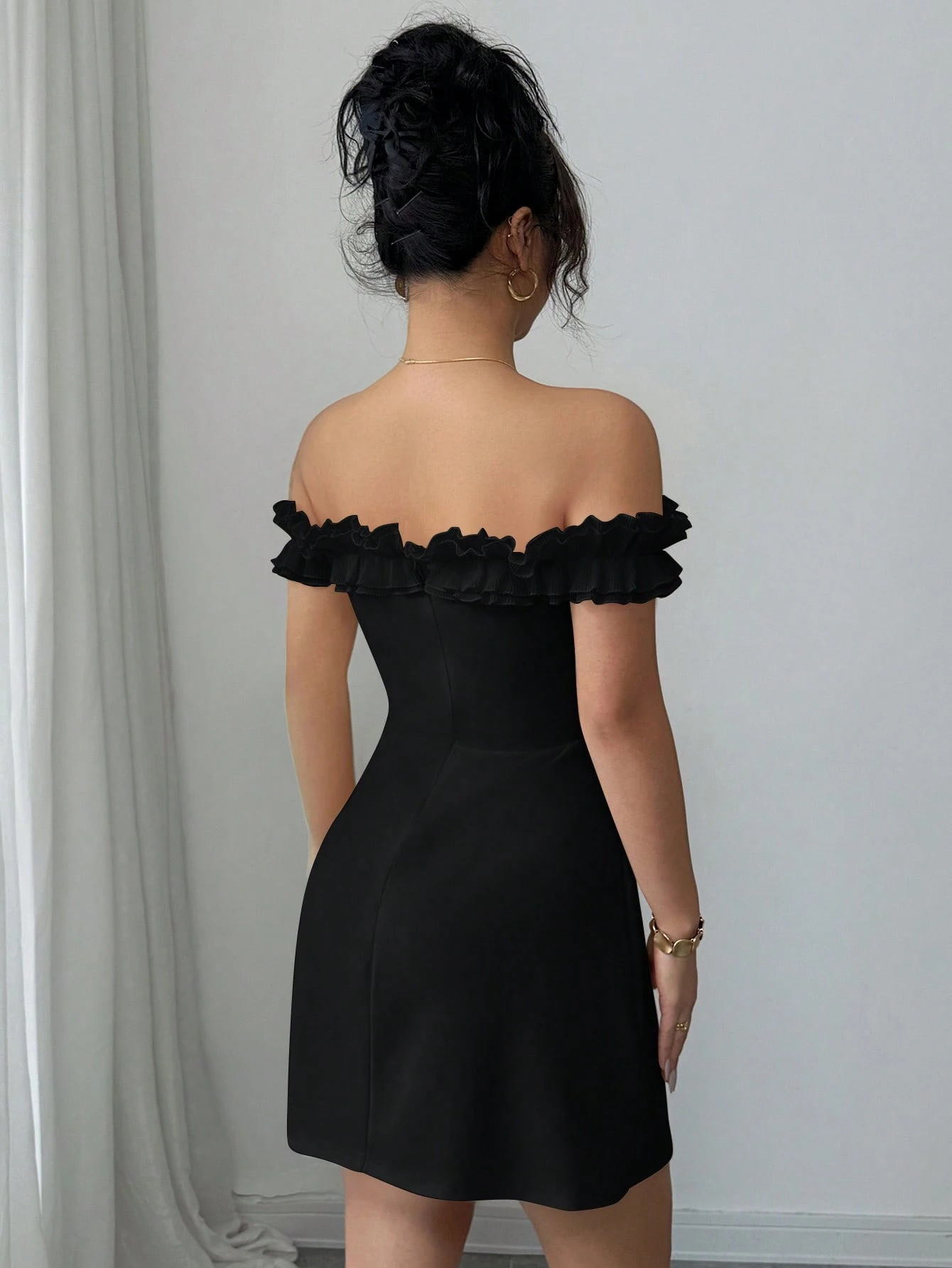 Vestido ajustado de cuello cruzado fruncido bajo con fruncido