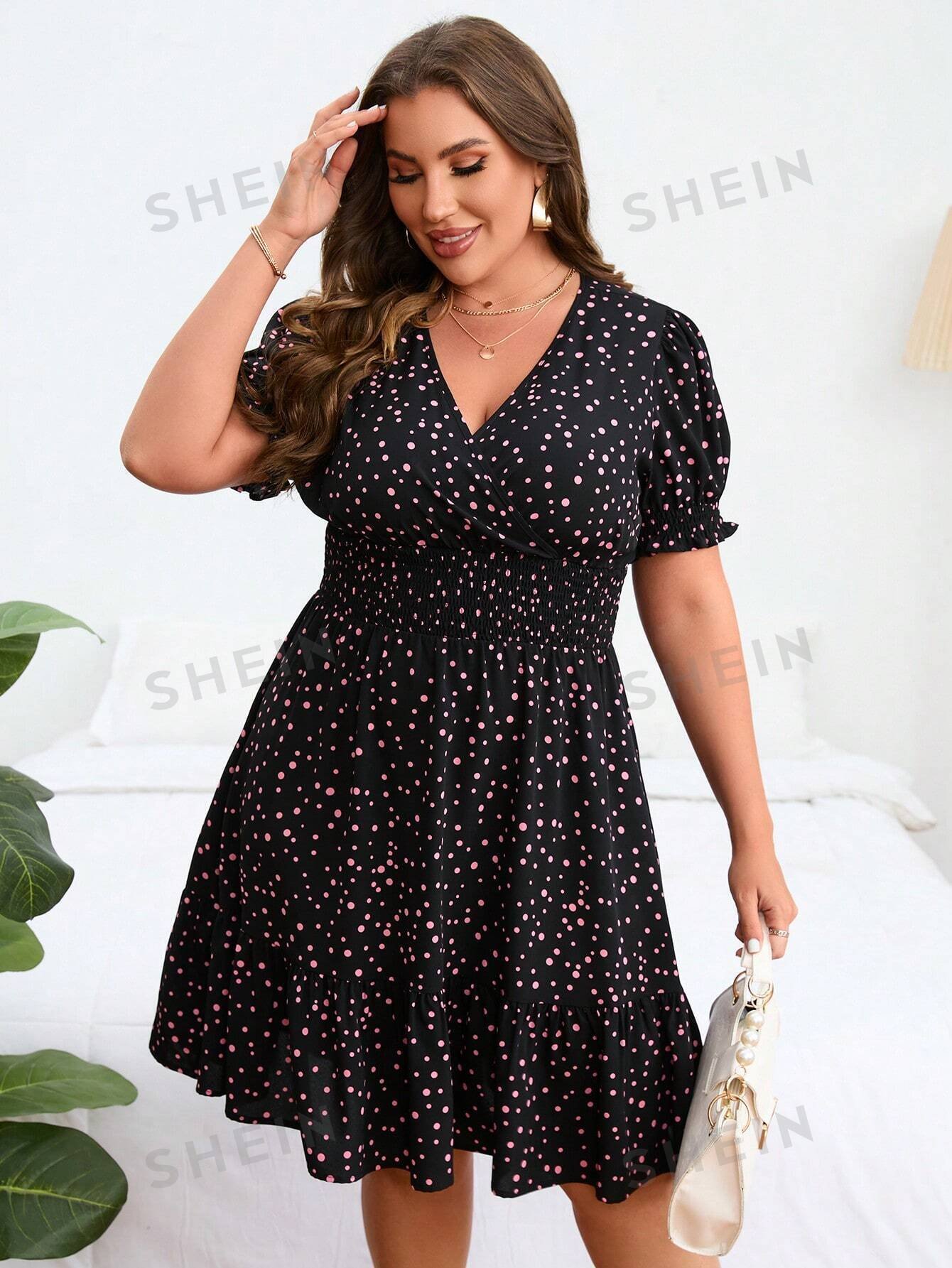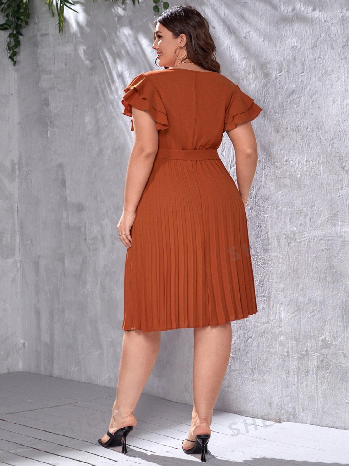 Vestido con cintur?n bajo fruncido de manga mariposa