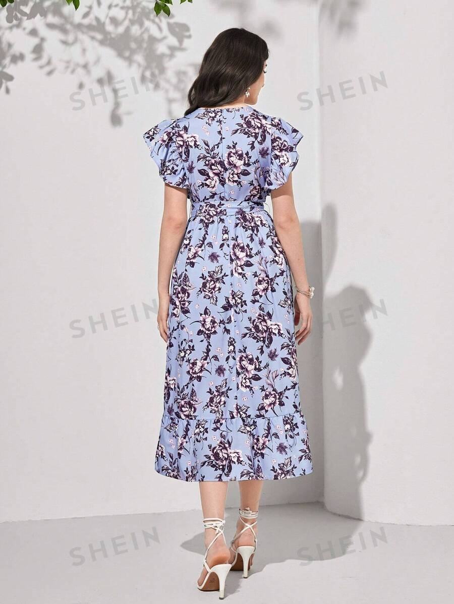 Vestido con cintur?n con estampado floral ribete con fruncido