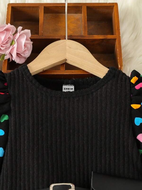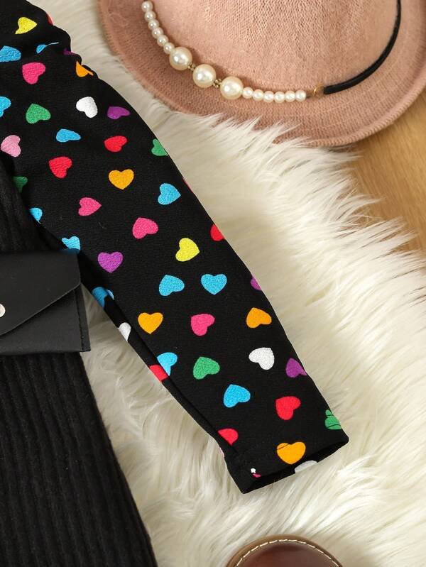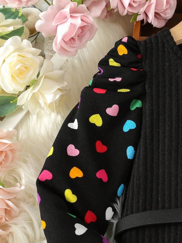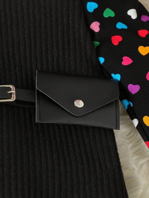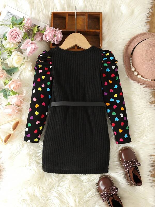 Vestido con estampado de coraz?n de manga farol con bolso de cintur?n