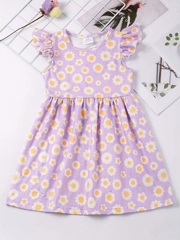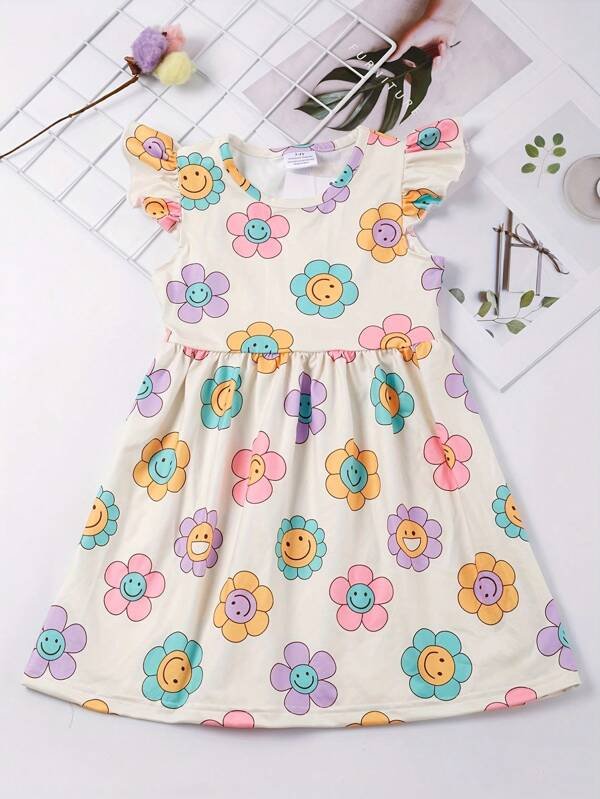Vestido Con Estampado De Cuadros De Dibujos Animado Para Ni?a