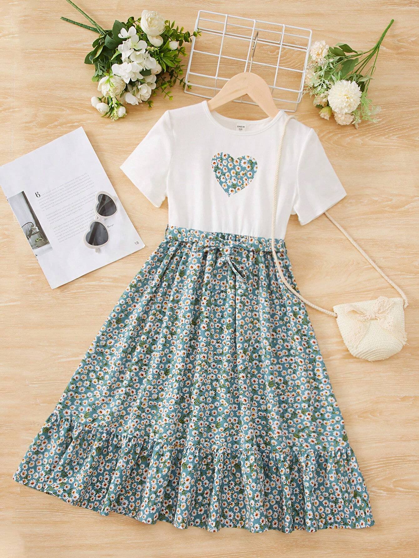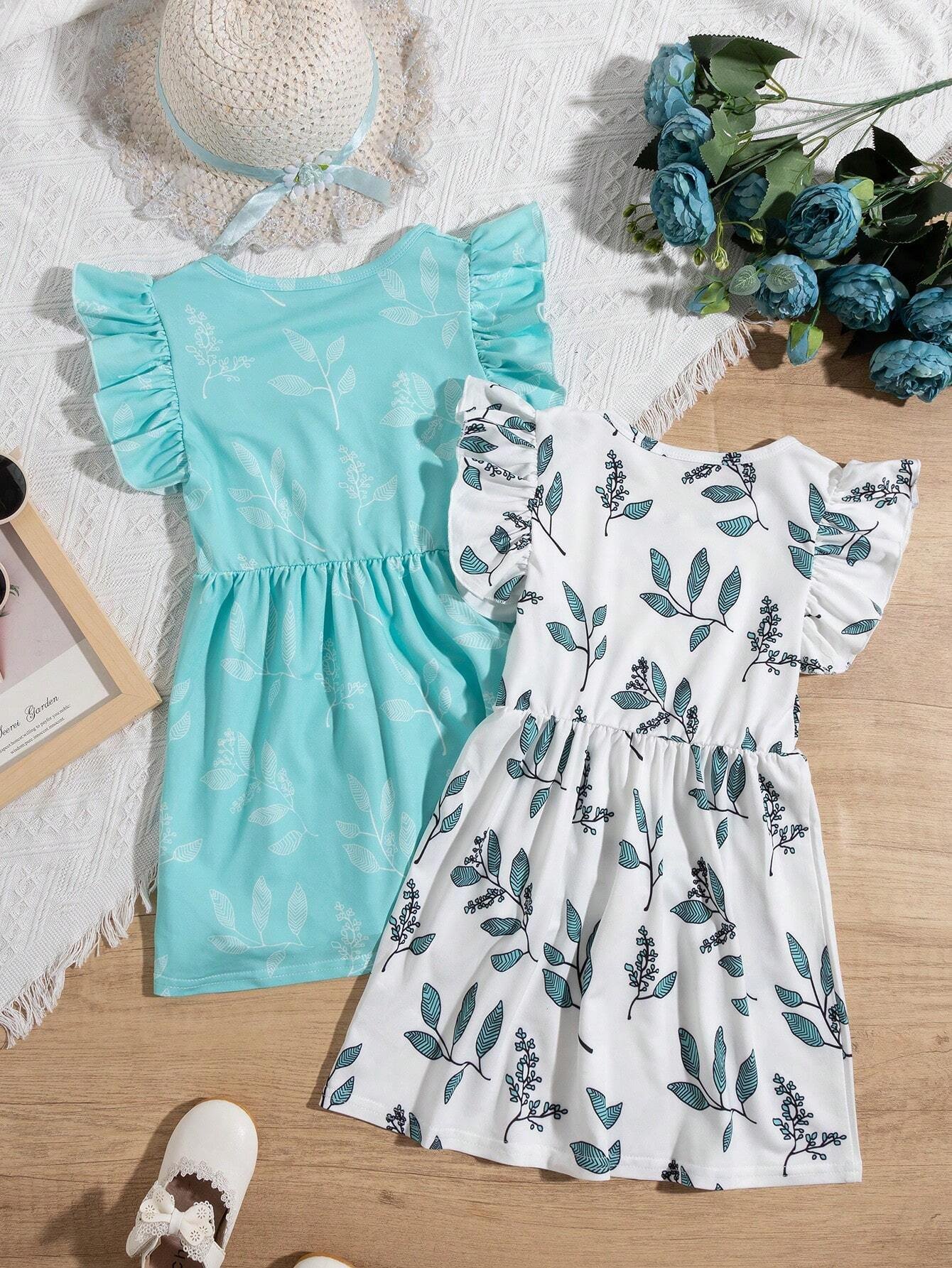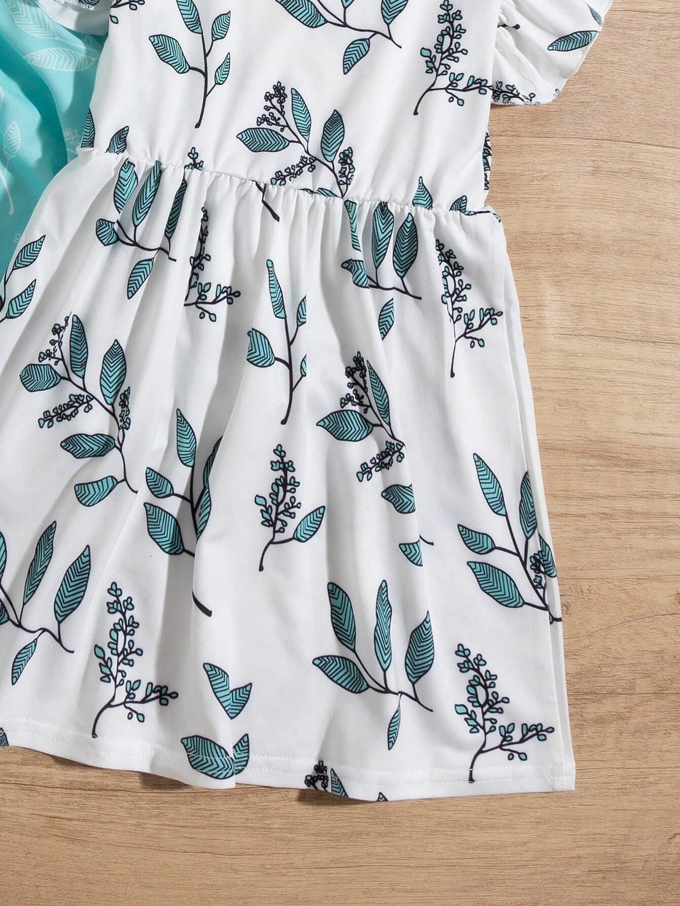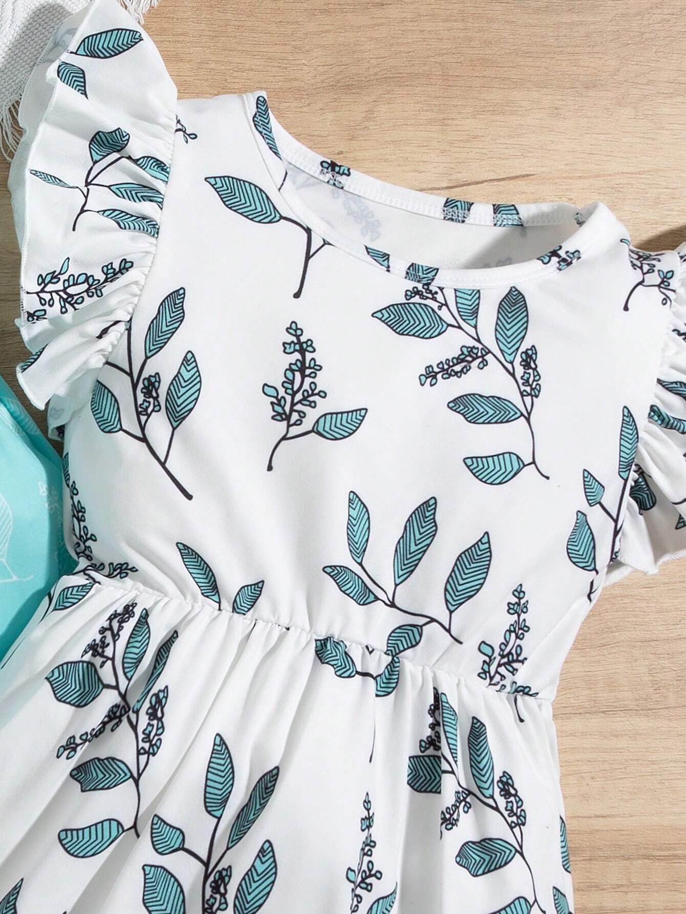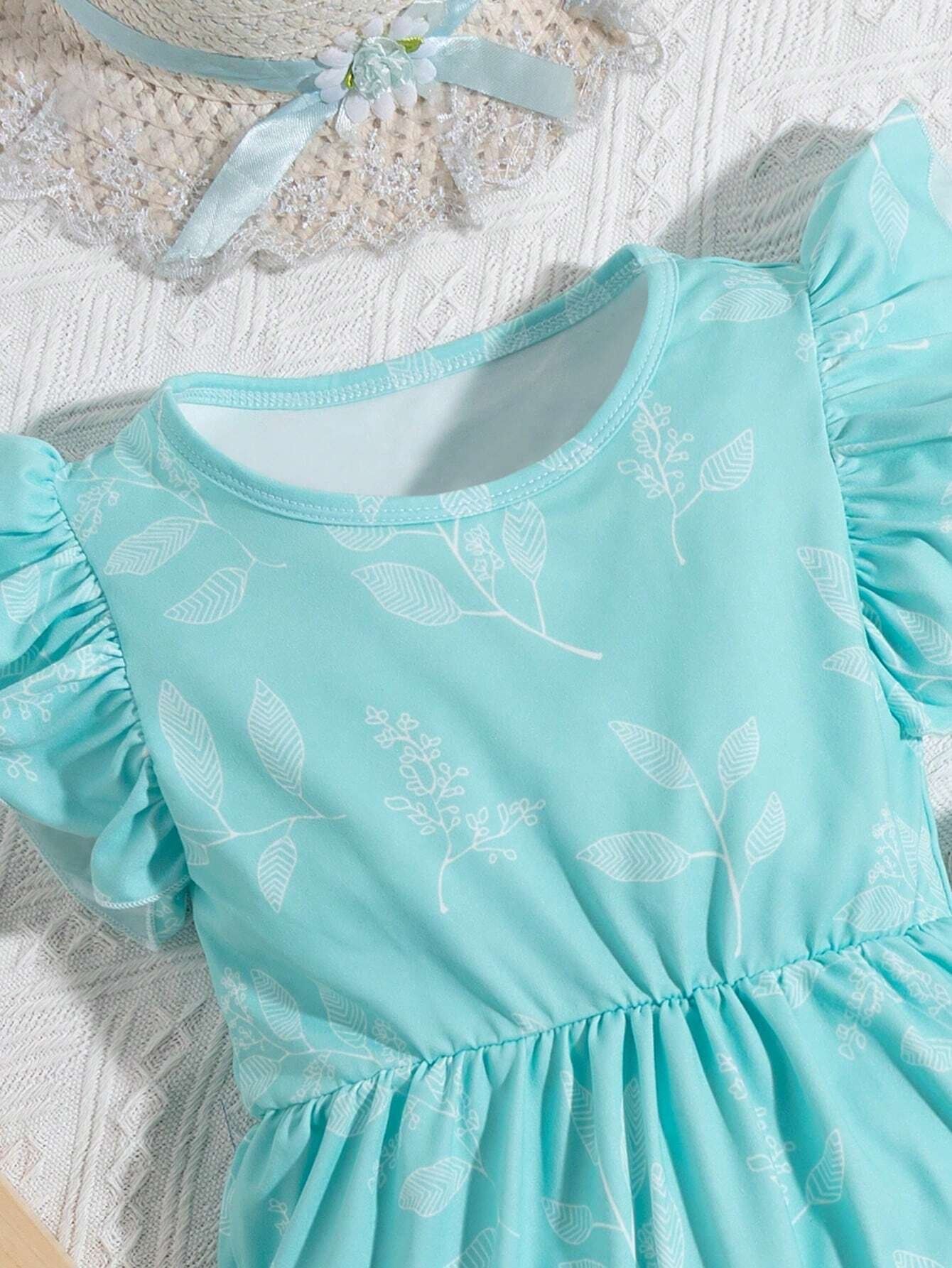 Vestido Con Estampado De Hojas Y Detalle De Volantes Para Ni?a Joven
