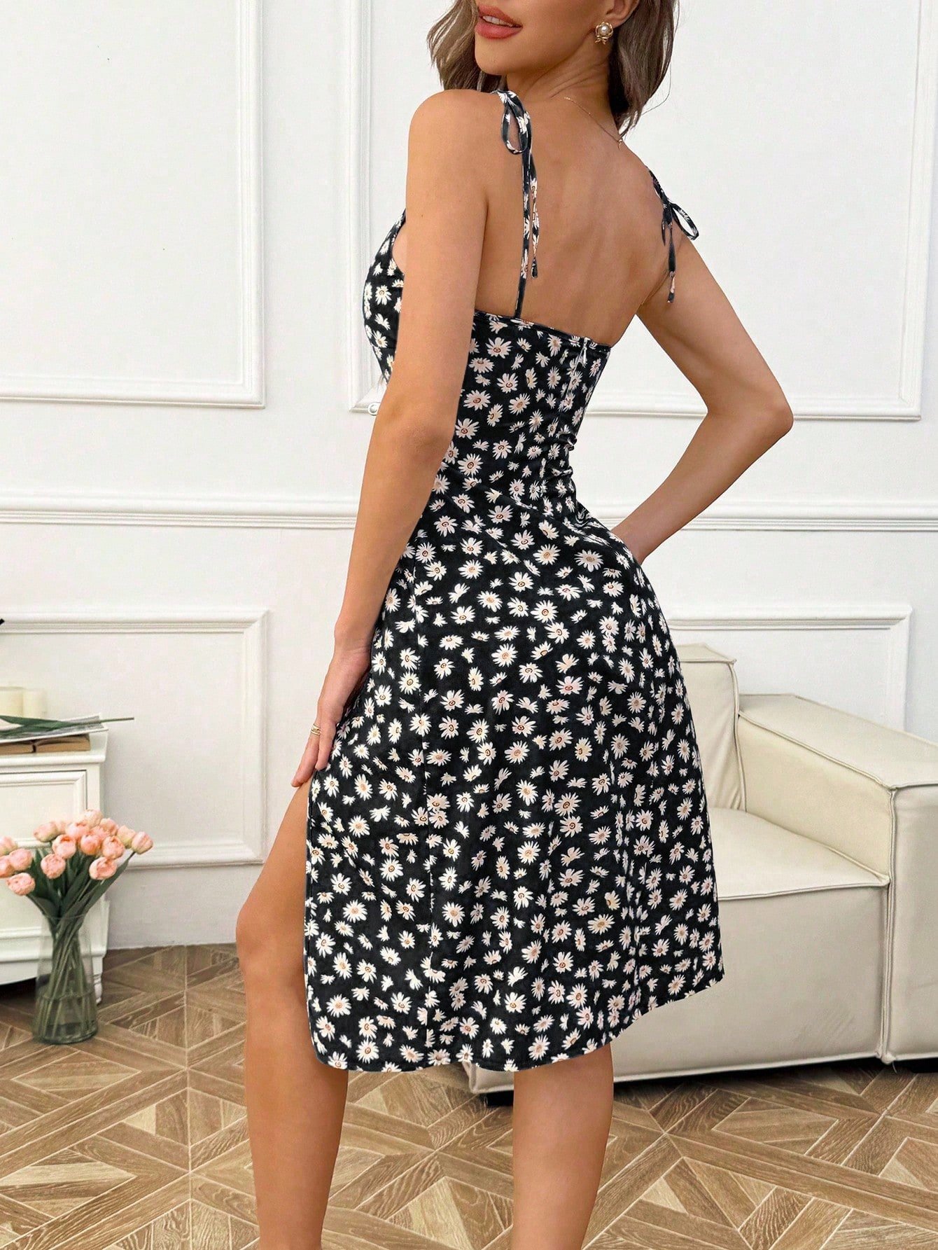 Vestido con estampado floral de margaritas, con tirantes de espagueti