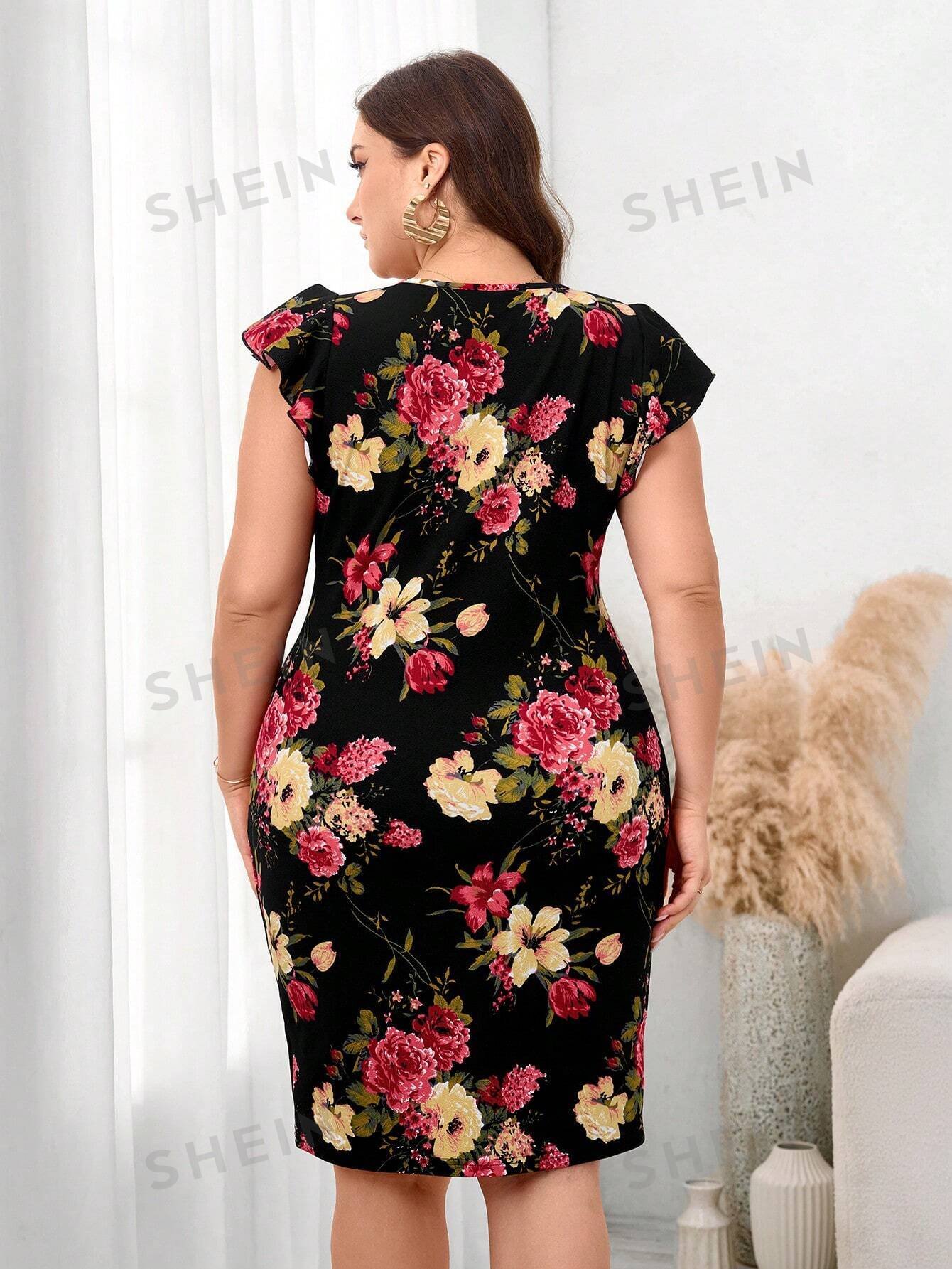 Vestido con estampado floral y ribete de volantes para mujer
