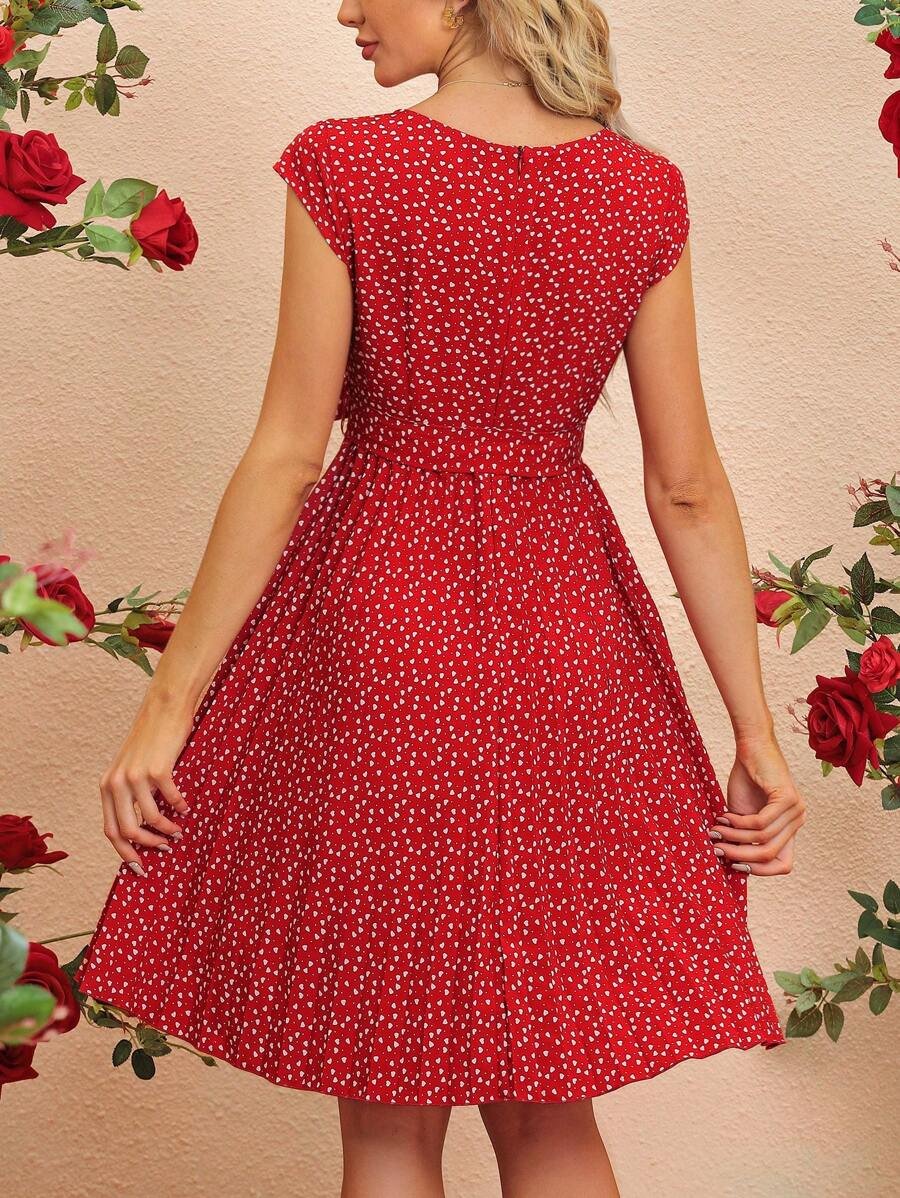 Vestido Con Pliegues Con Dise?o De Coraz?n Y Cintur?n
