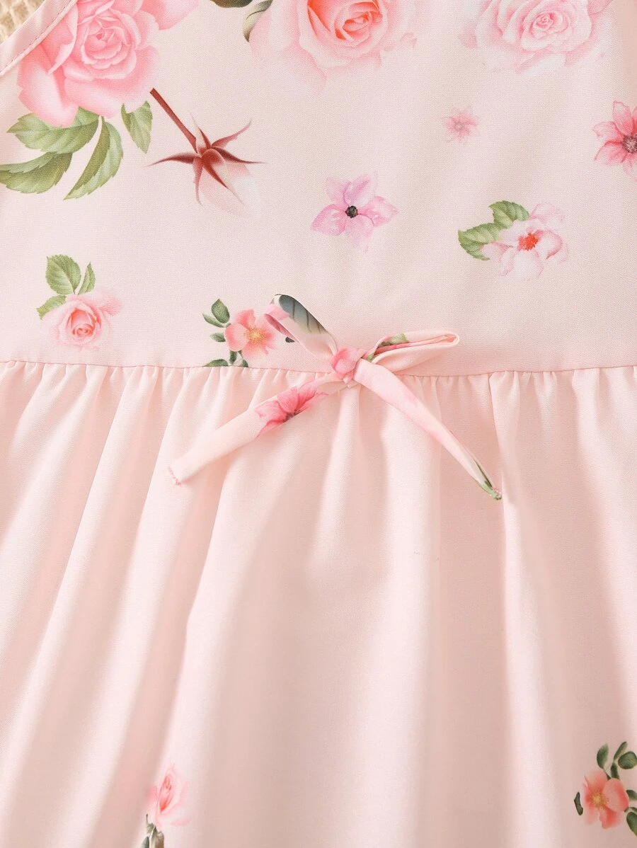 Vestido con vuelo y tirantes finos con estampado floral, rom?ntico, rosa claro, para ni?a