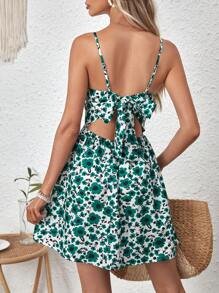 Vestido Cord?n de espalda Espalda al aire Floral todo estampado Bohemio