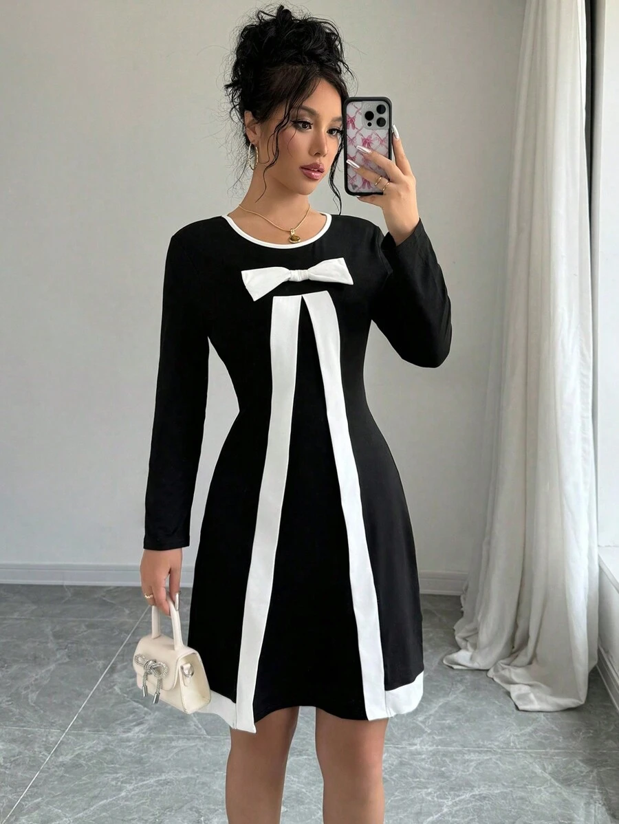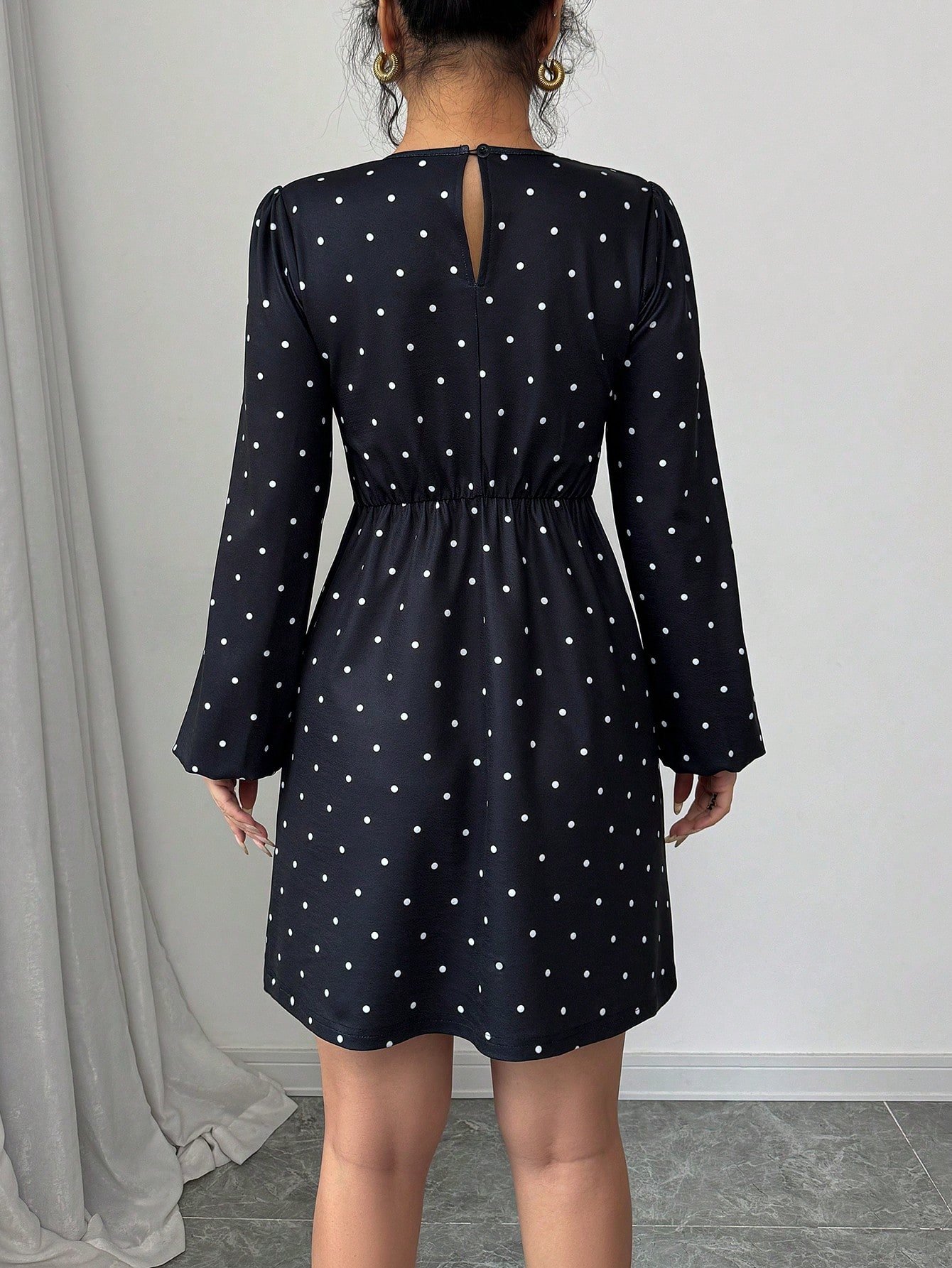 Vestido corto de línea A con lunares, mangas abullonadas