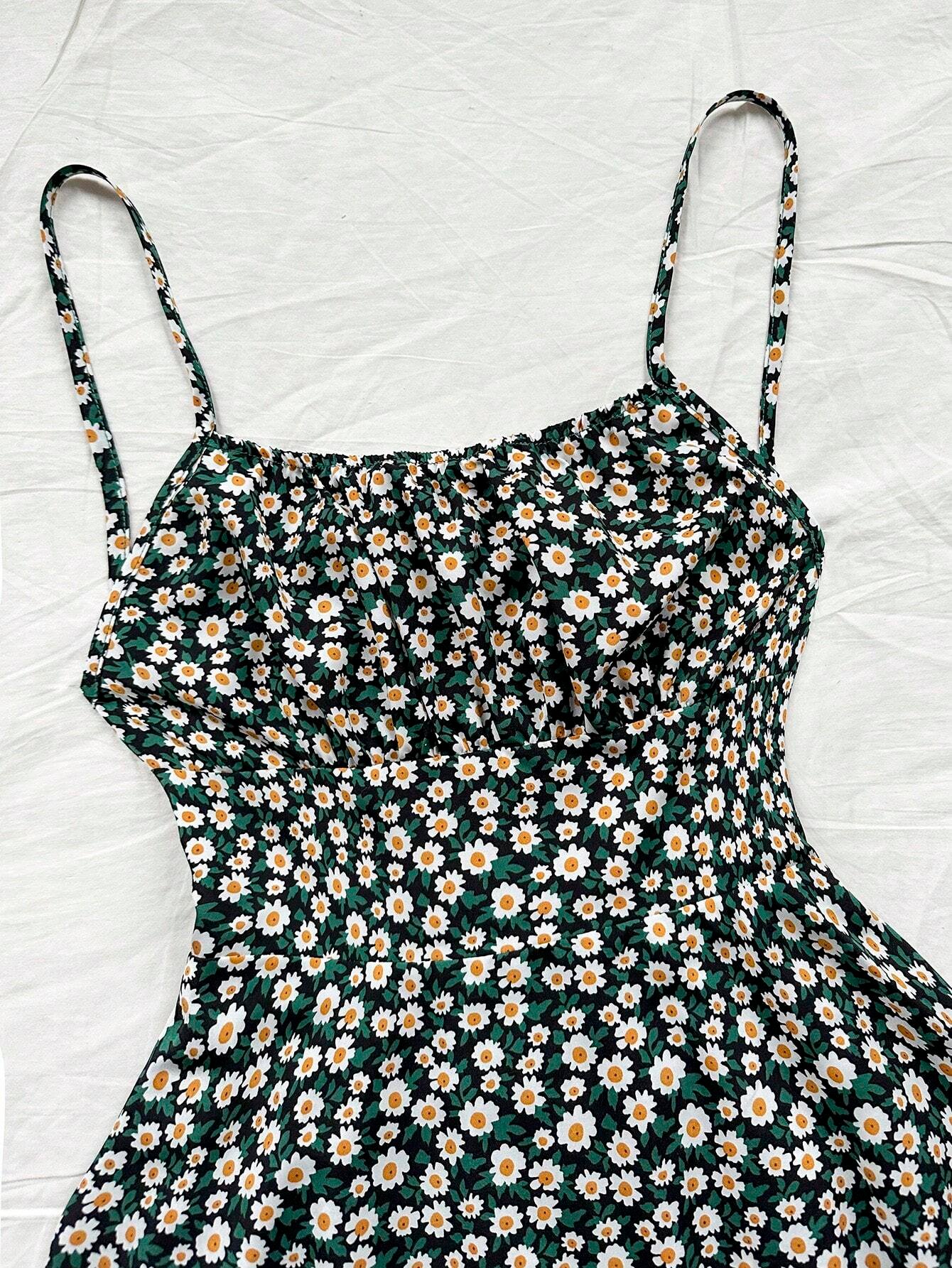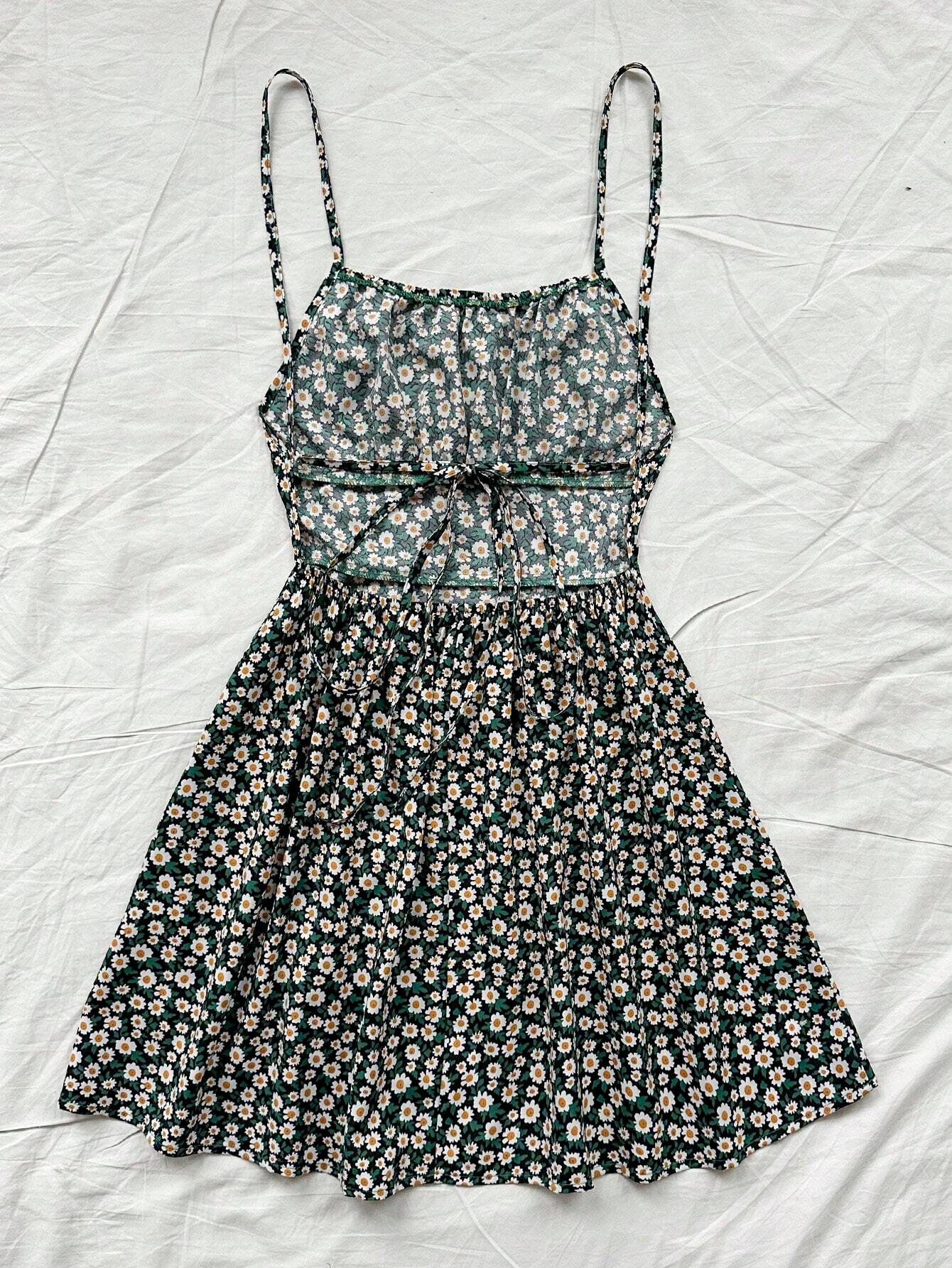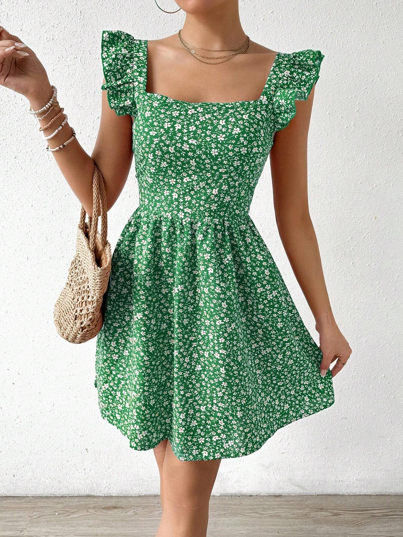 Vestido corto de verano con tirantes espagueti cruzados, sin espalda y dise?o floral