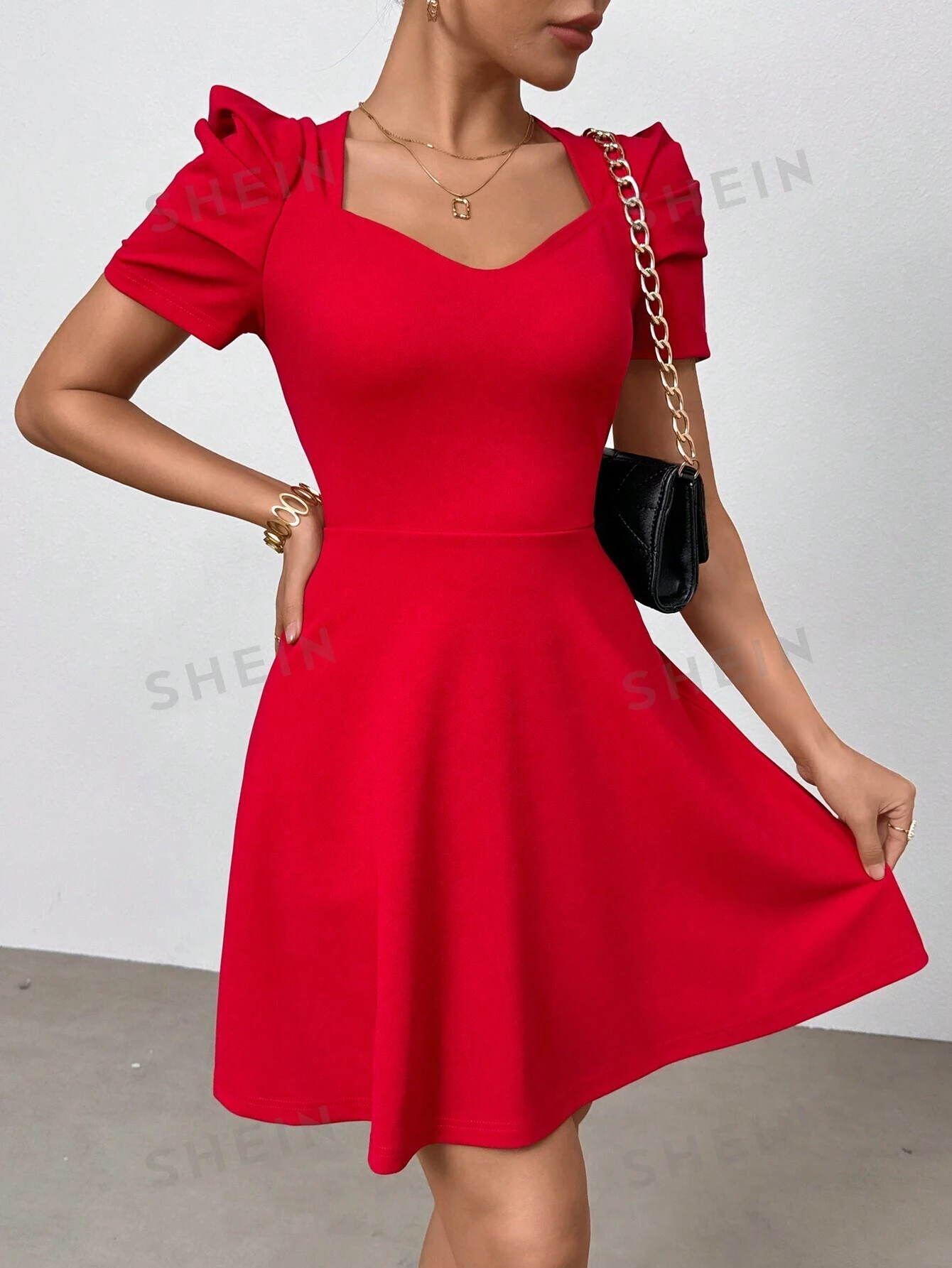 Vestido Corto Rojo De Manga Corta Para Mujeres, Romántico Vestido