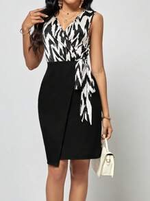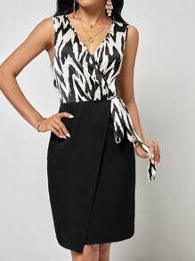 Vestido cruzado con estampado de dibujo con nudo lateral