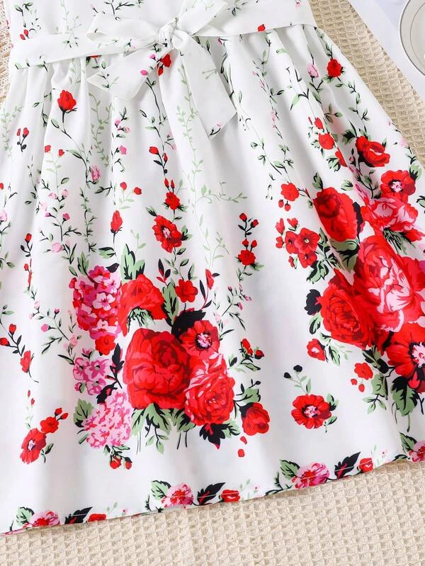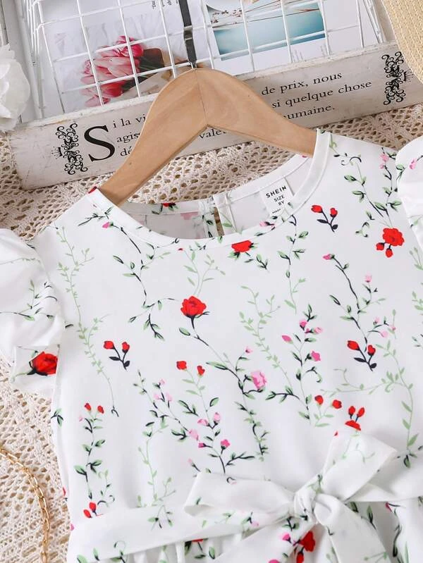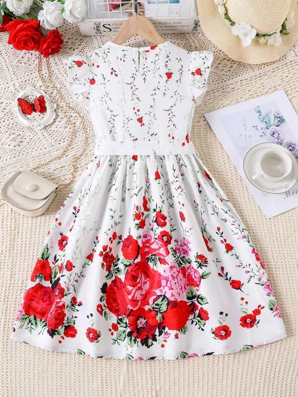 Vestido De Cintura Con Manga De Mariposa Y Estampado Floral Para Ni?a Adolescente