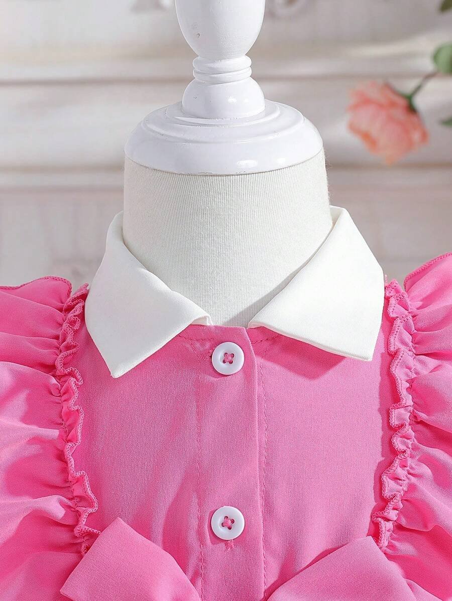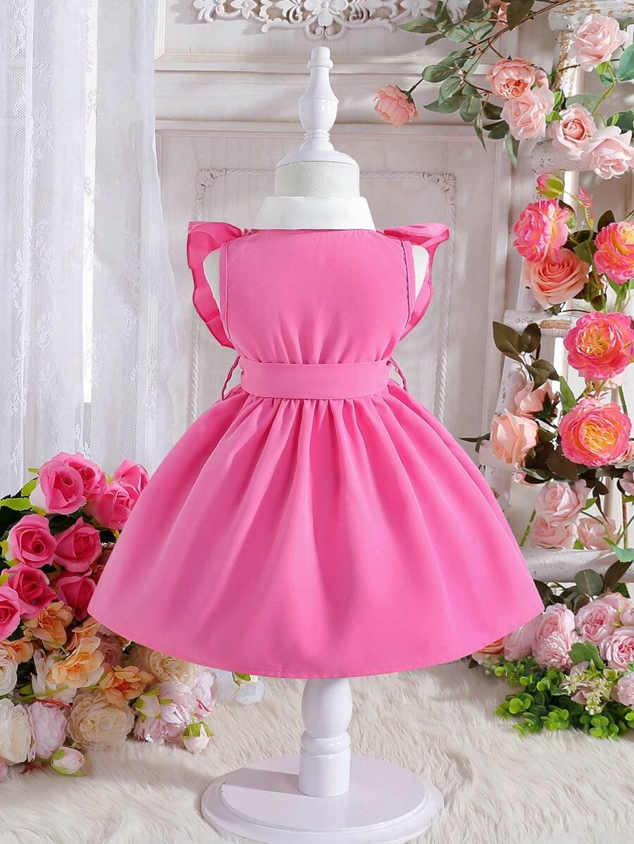 Vestido De Cuello Acanalado Con Volantes Y Dobladillo Para Beb?