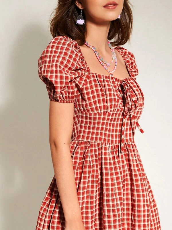 Vestido de cuello cisne con estampado de pata de gallo acolchado bajo con abertura