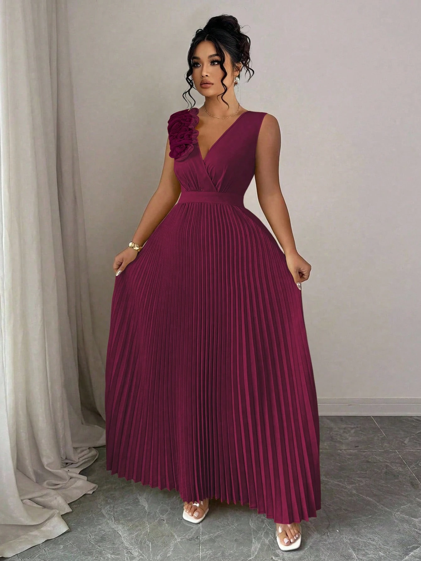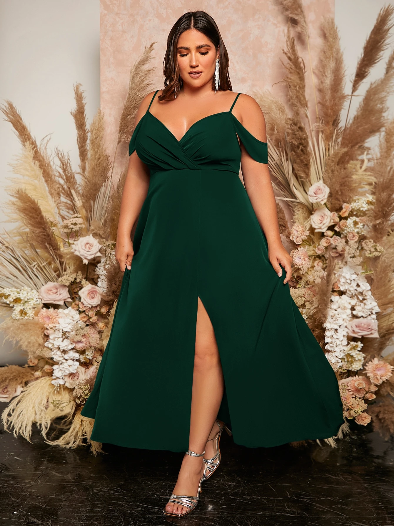 Vestido de dama de honor con hombros descubiertos y dobladillo envolvente