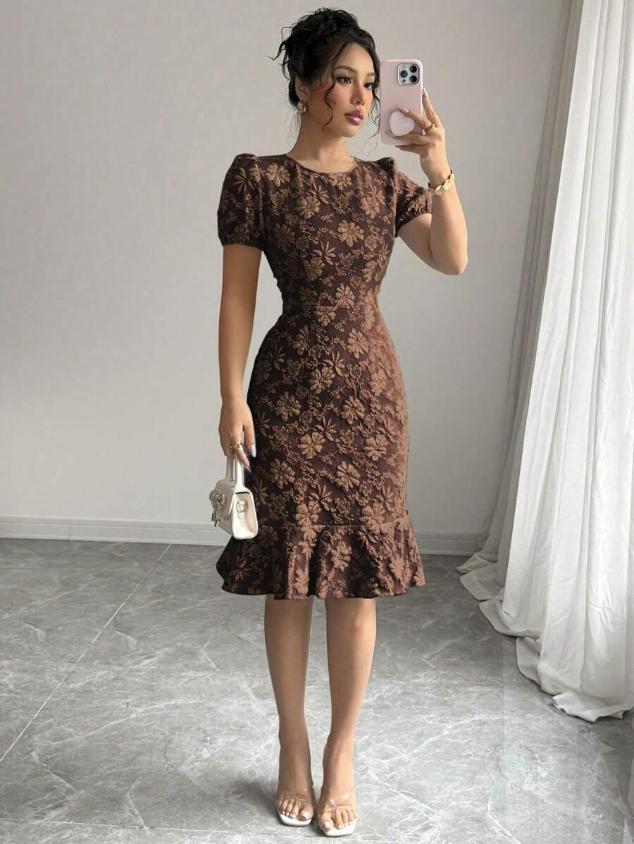 Vestido de fiesta de satén con textura floral azul, de tirantes cruzados y sin mangas