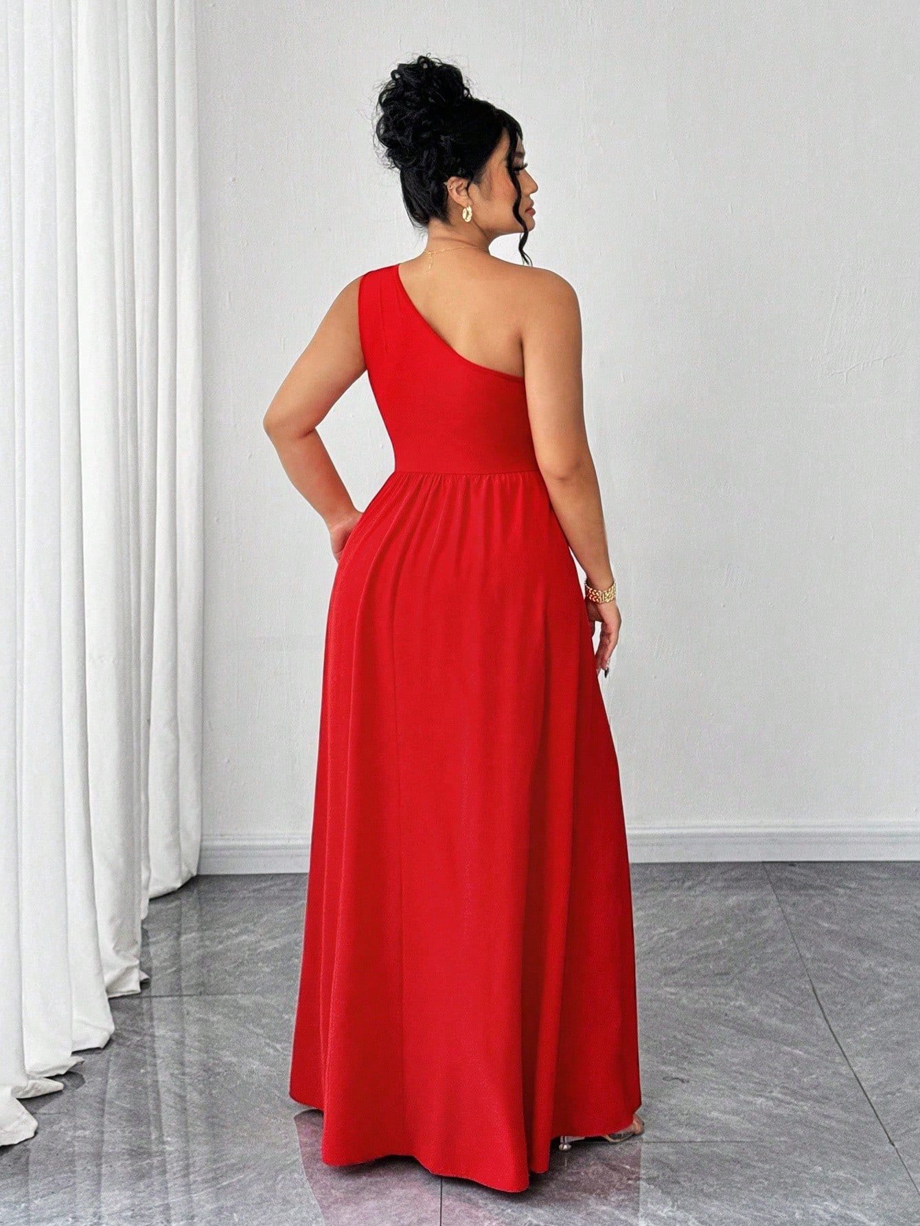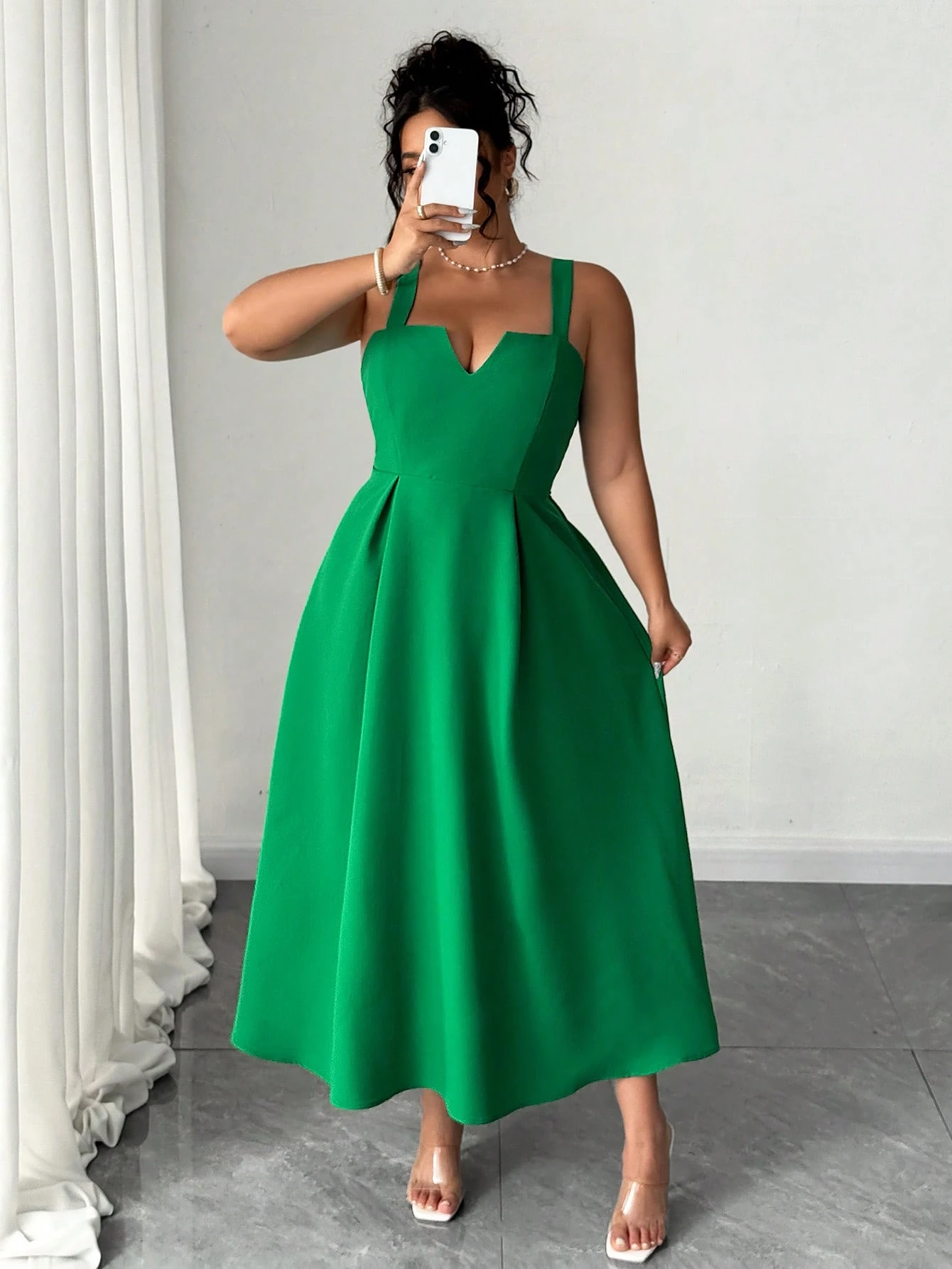 Vestido de tirantes unicolor fruncido de muslo con abertura de saten
