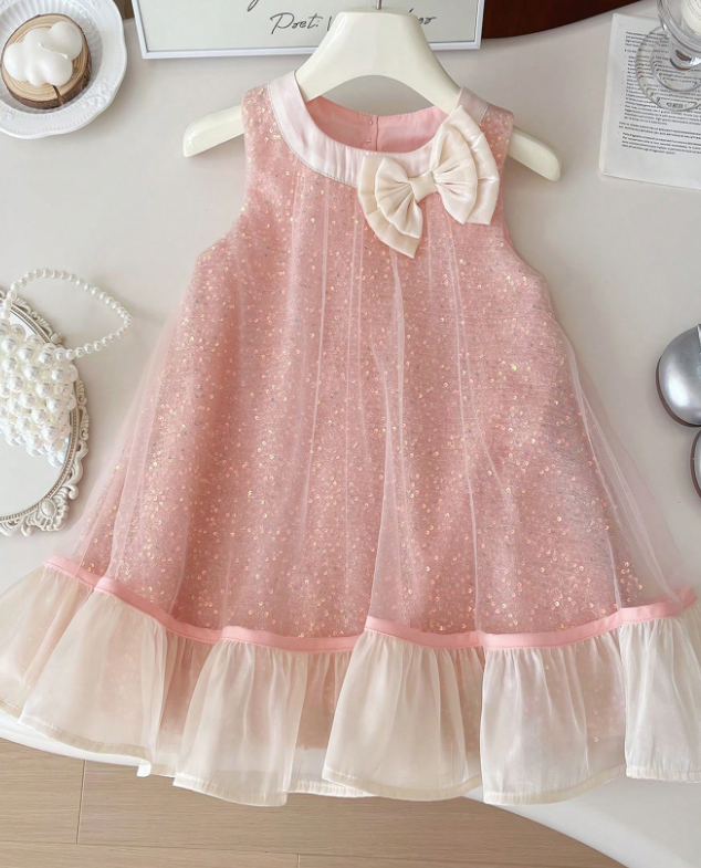 Vestido de línea A sin mangas con volantes y lazo de perlas