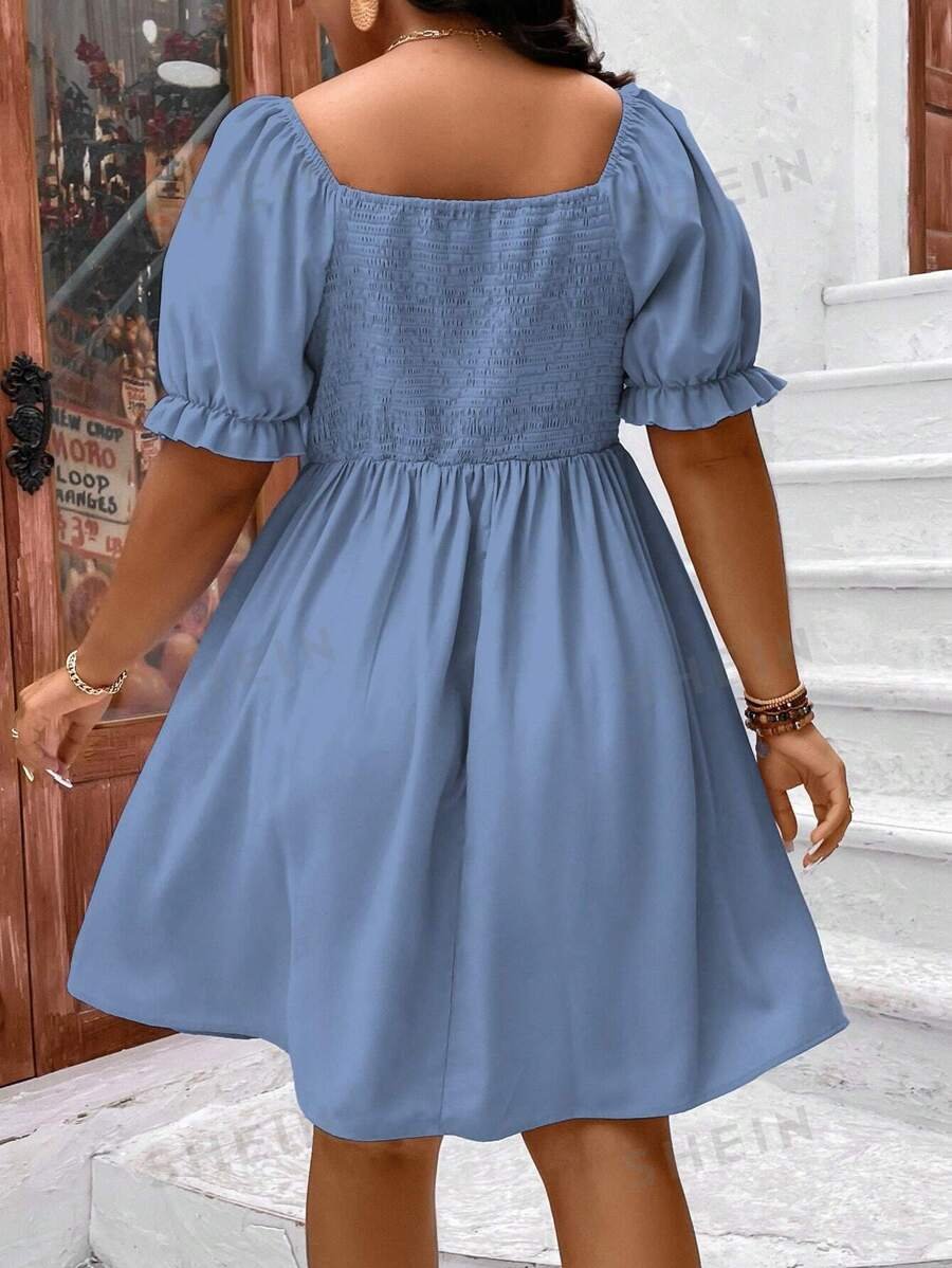 Vestido De Manga Abullonada Con Cuello Cuadrado De Color Sólido