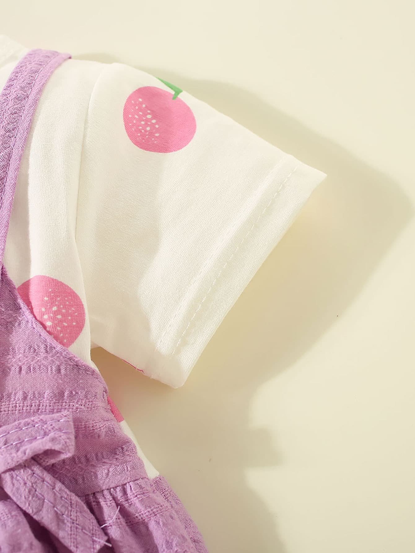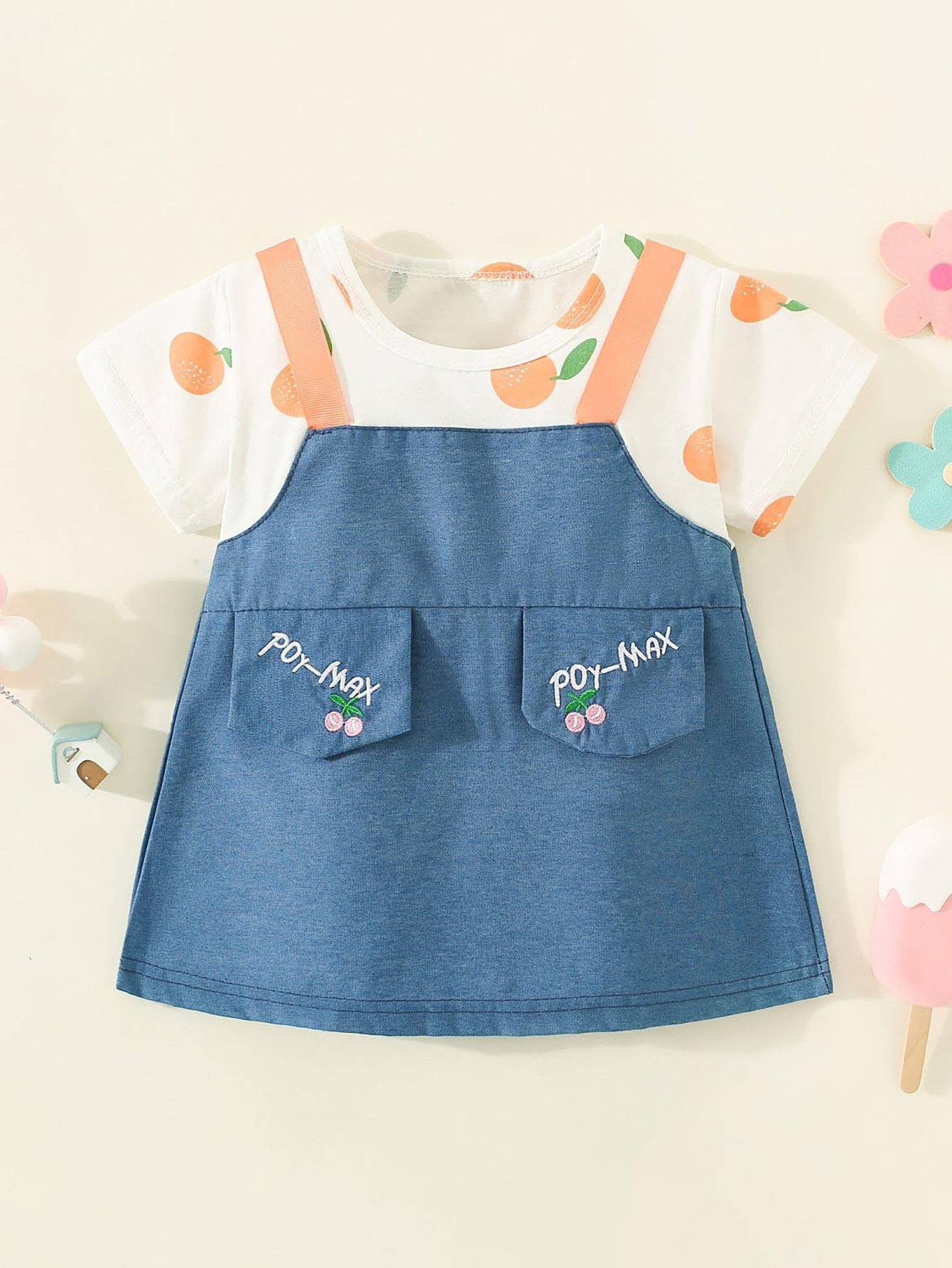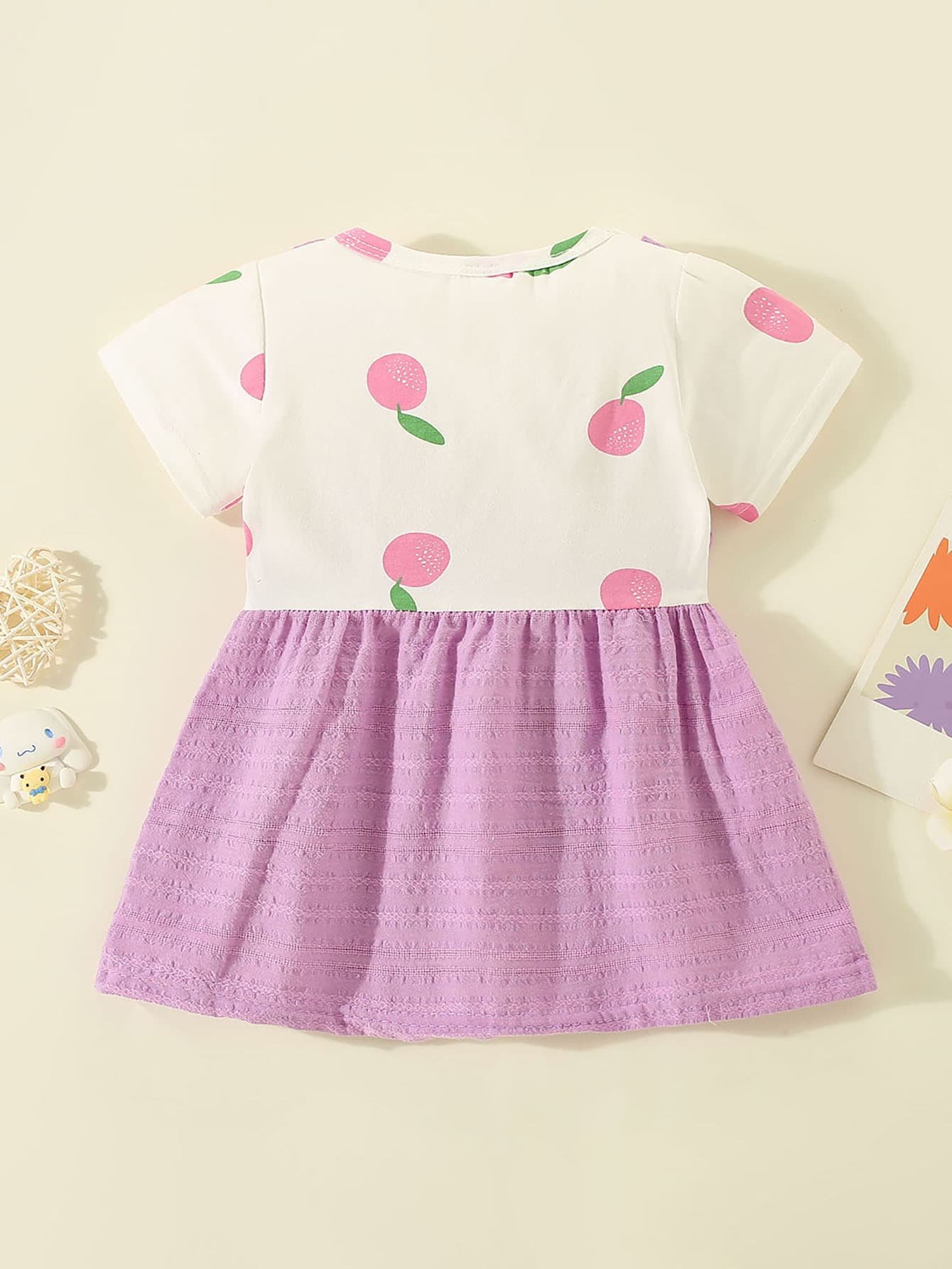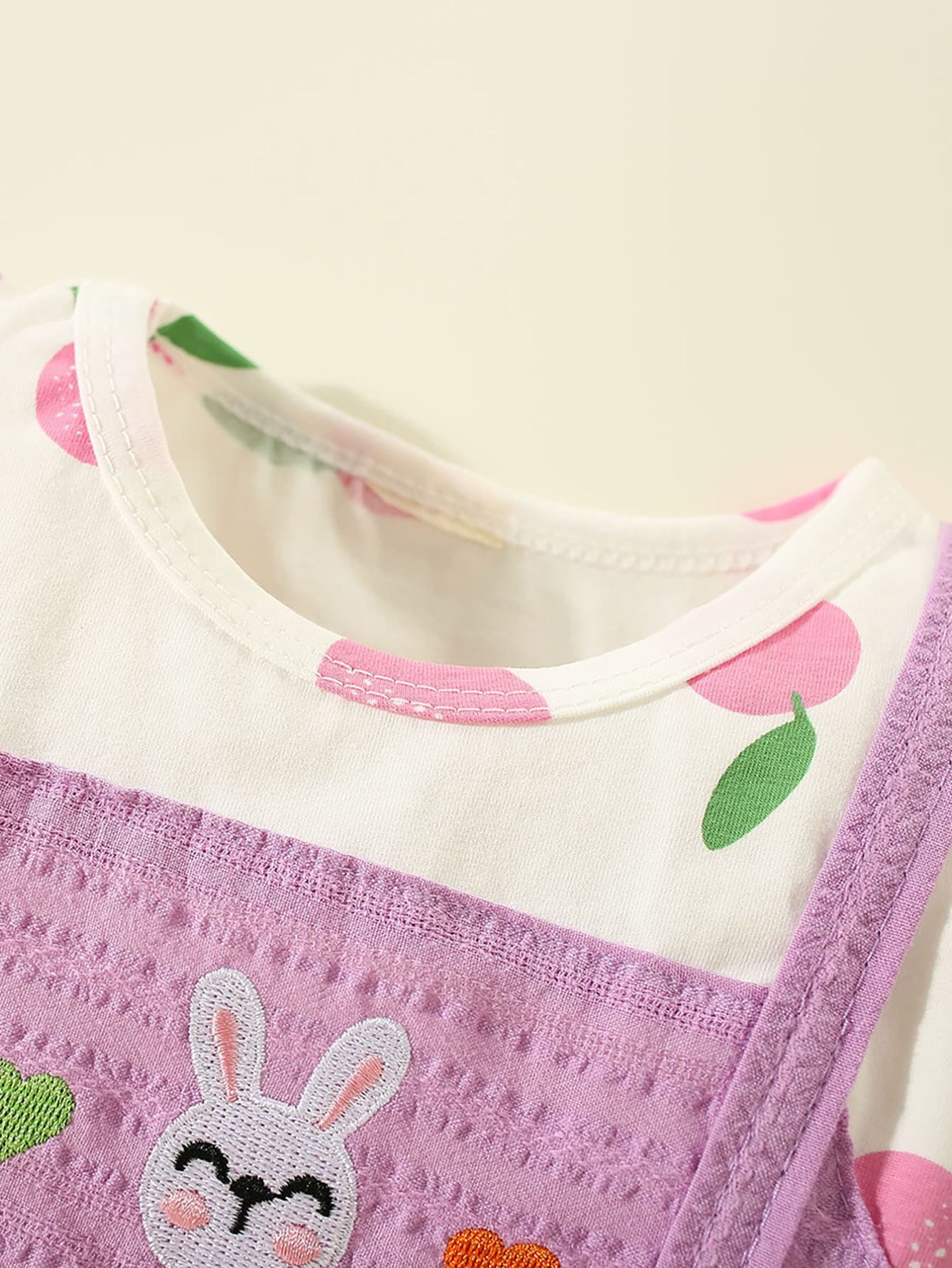 Vestido de manga corta con aplicaci?n de conejo de retazos de bloque de color de algod?n puro para ni?a peque?a