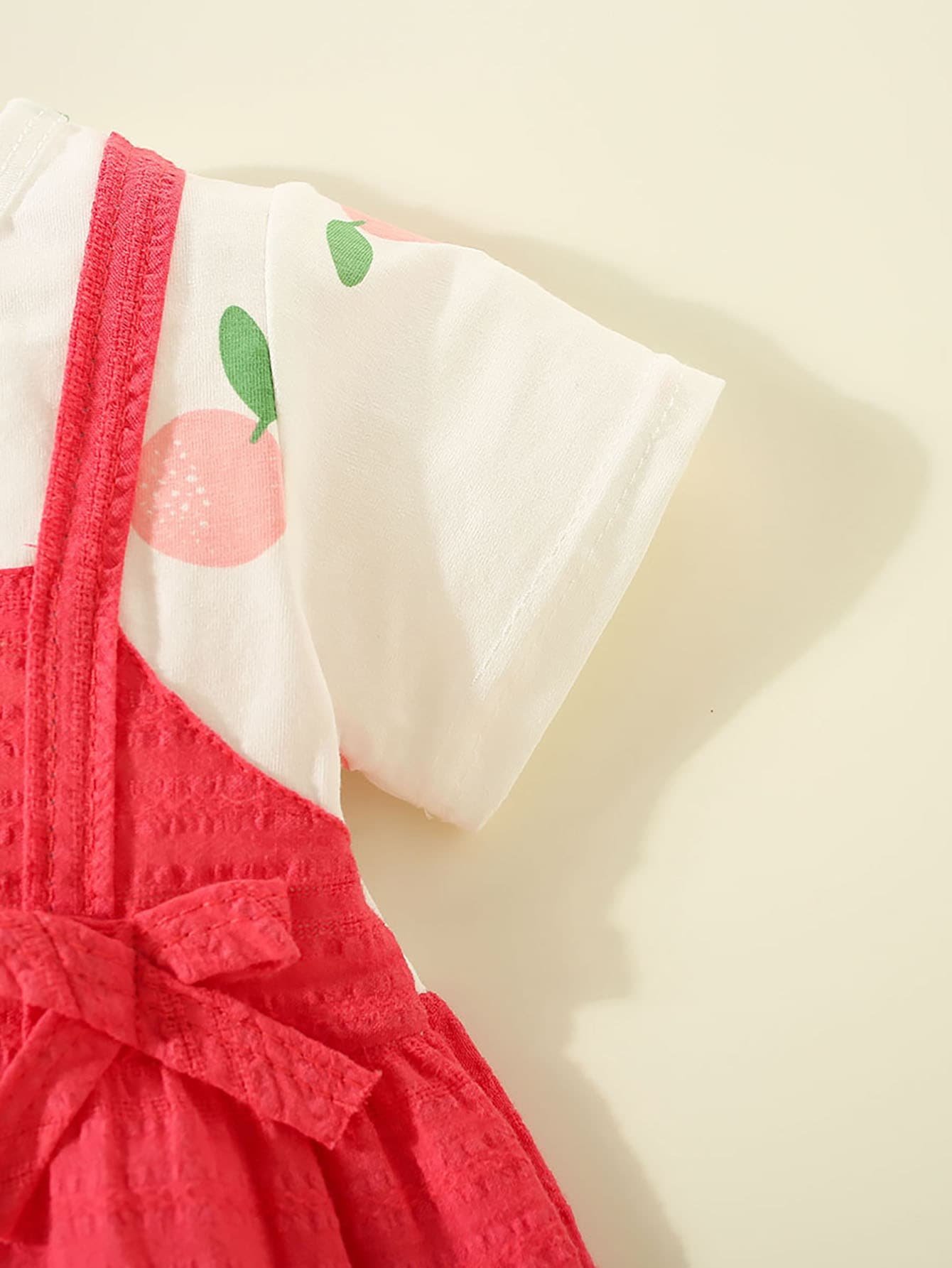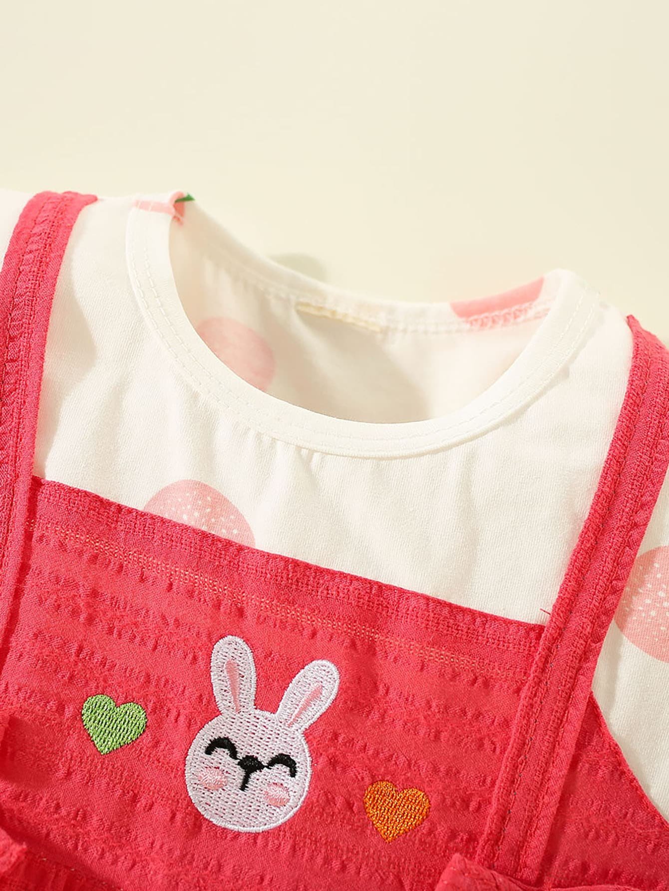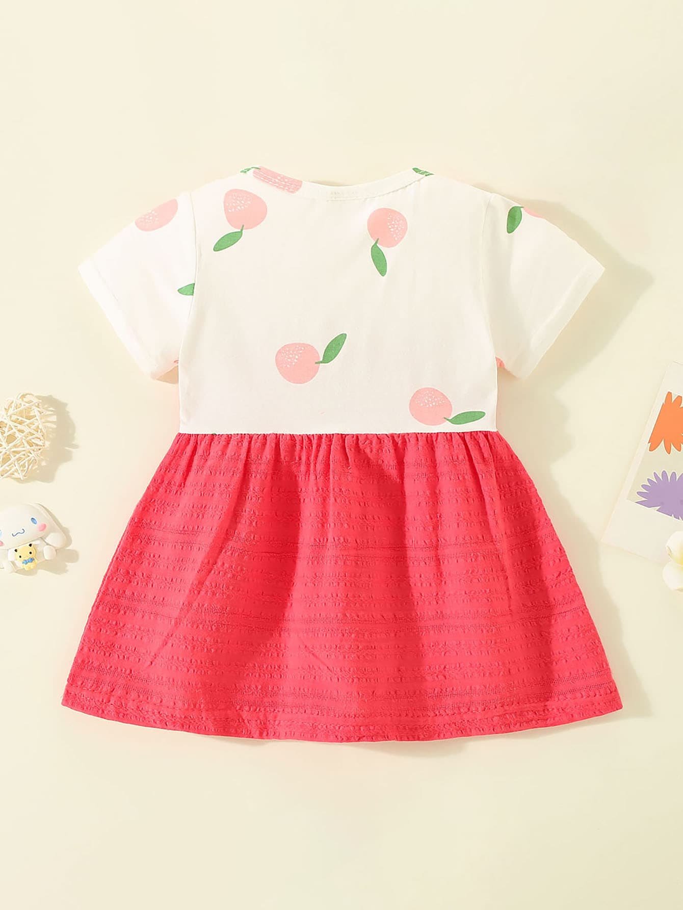 Vestido de manga corta con aplicaci?n de conejo de retazos de bloque de color de algod?n puro para ni?a peque?a