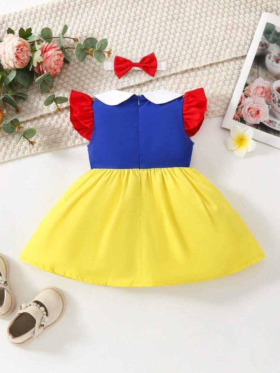 Vestido De Manga Corta Con Bloque De Color Lindo Para Ni?as