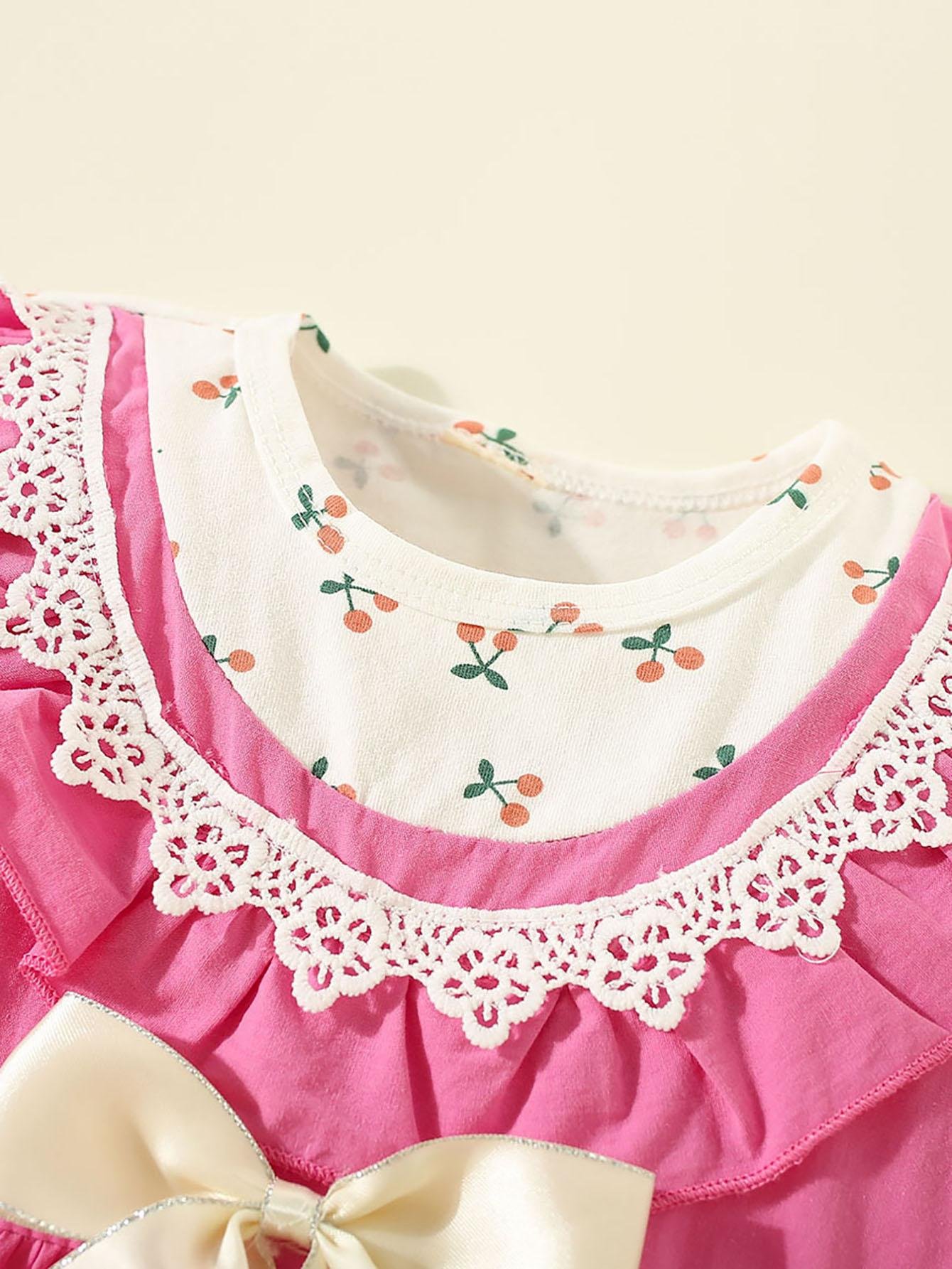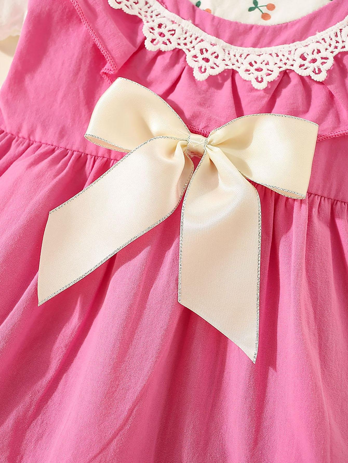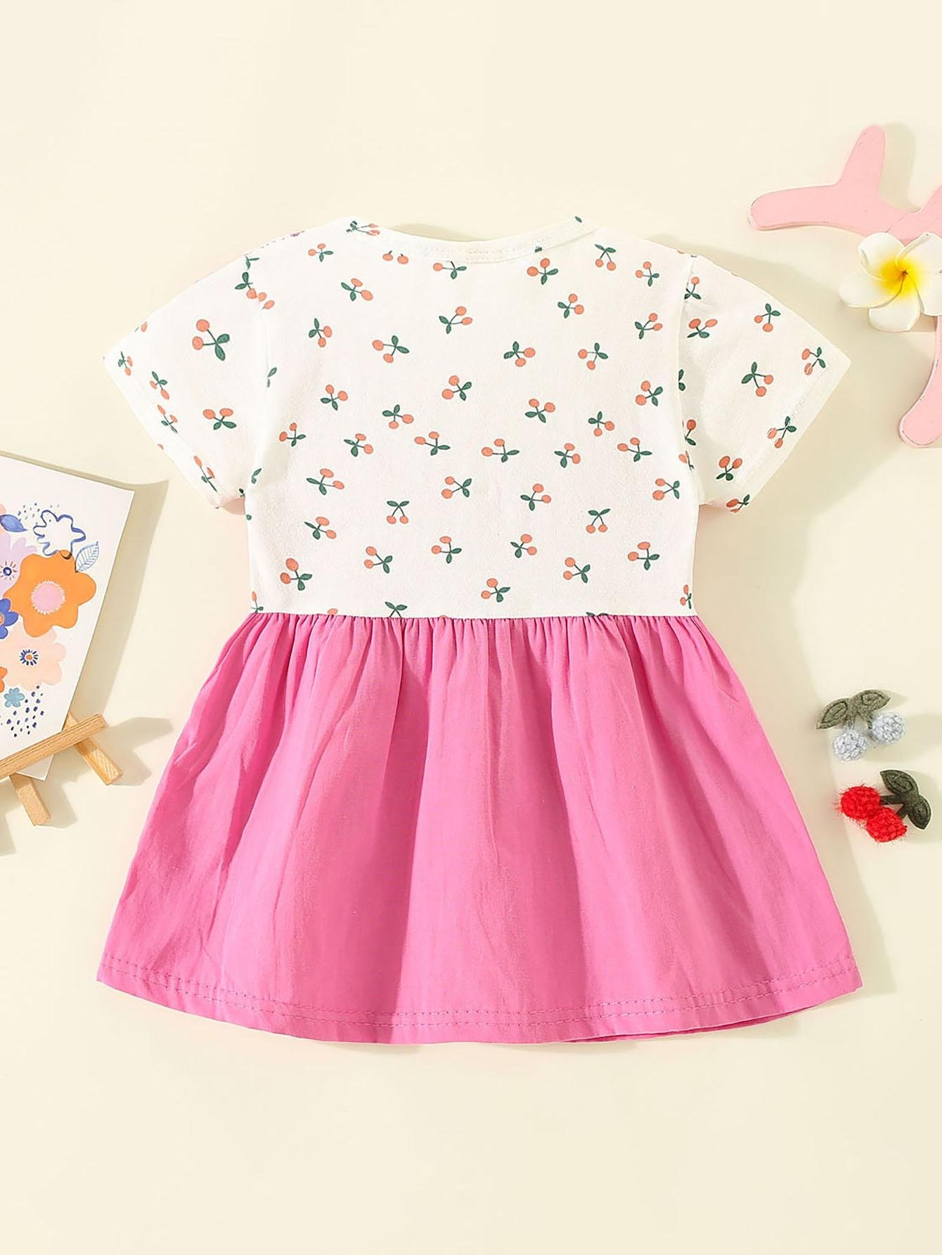 Vestido de manga corta con dise?o de cerezas de algod?n puro para ni?as peque?as
