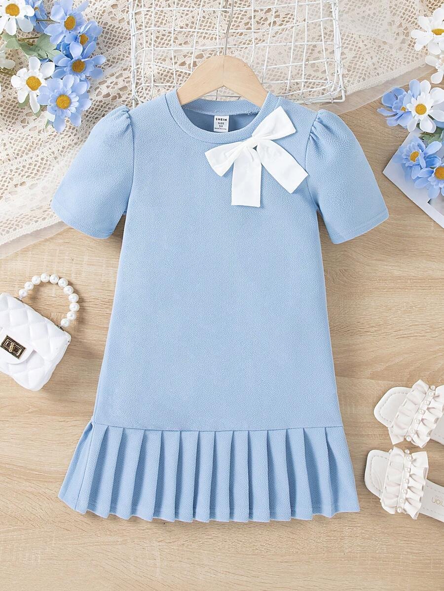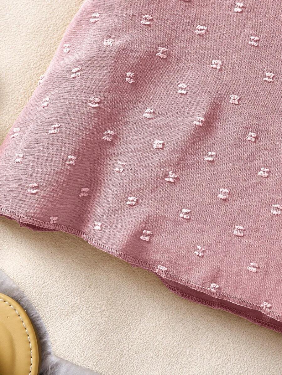 Vestido de manga corta con gorra de tejido de lunares para niña joven con dobladillo con volante