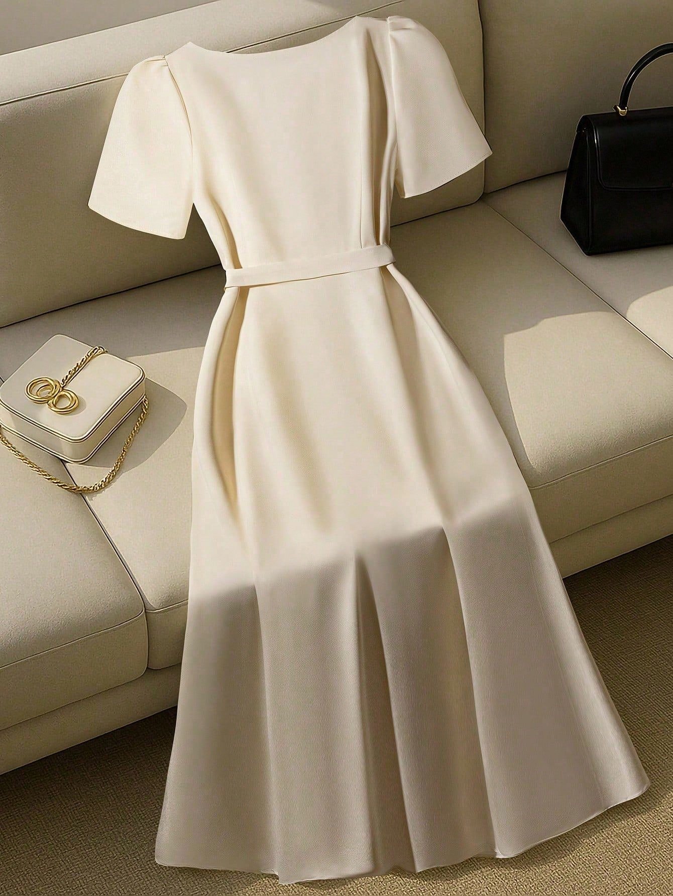 Vestido de manga corta elegante de unicolor con escote corazón