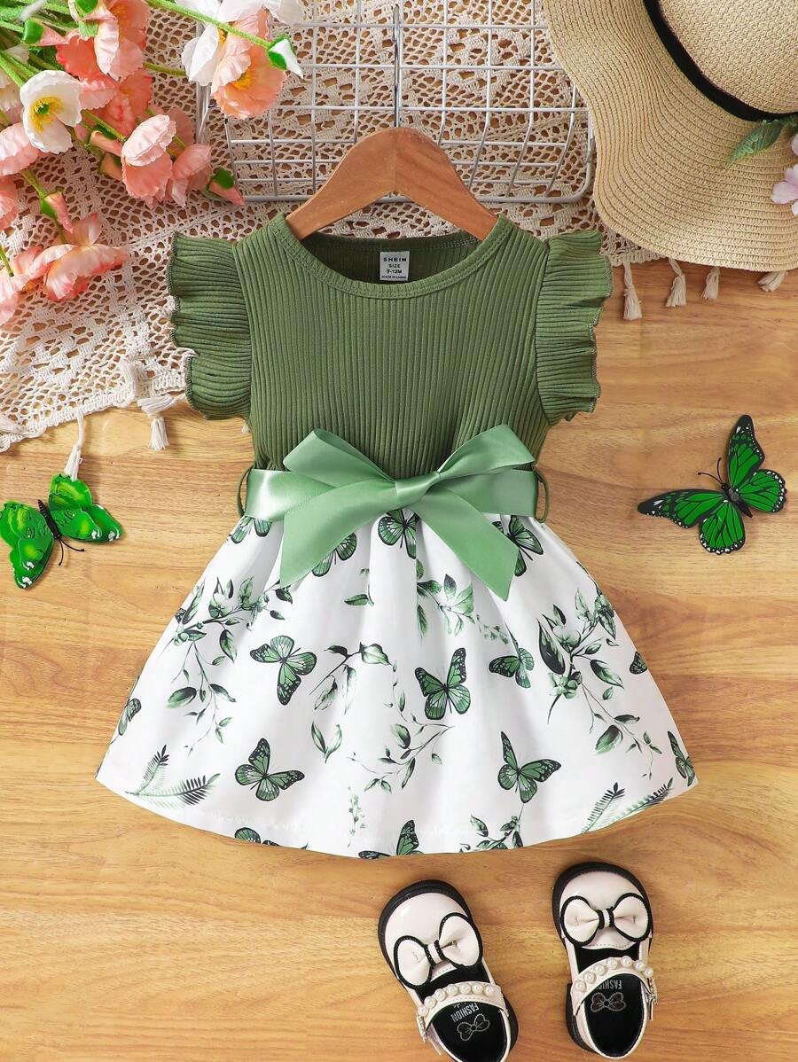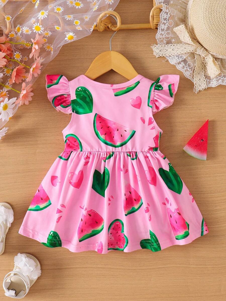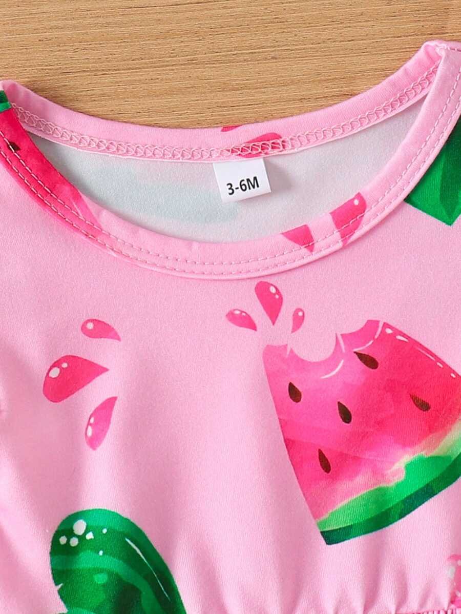 Vestido de manga corta elegante y lindo con estampado de frutas