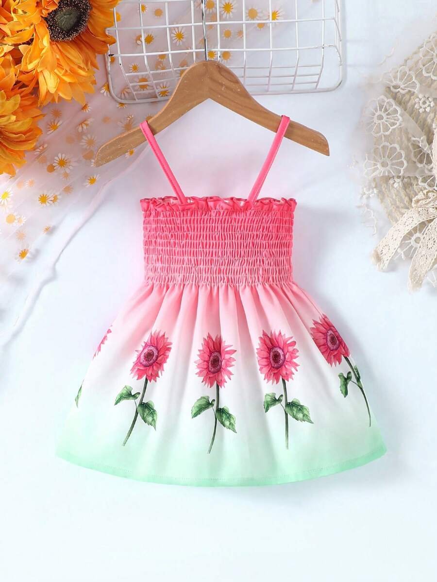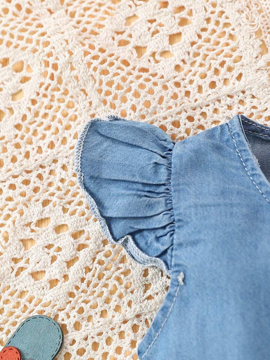 Vestido De Mezclilla Sin Mangas Para Ni?a Con Estampado Floral