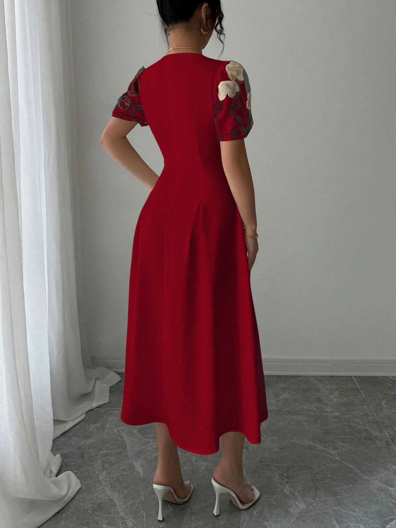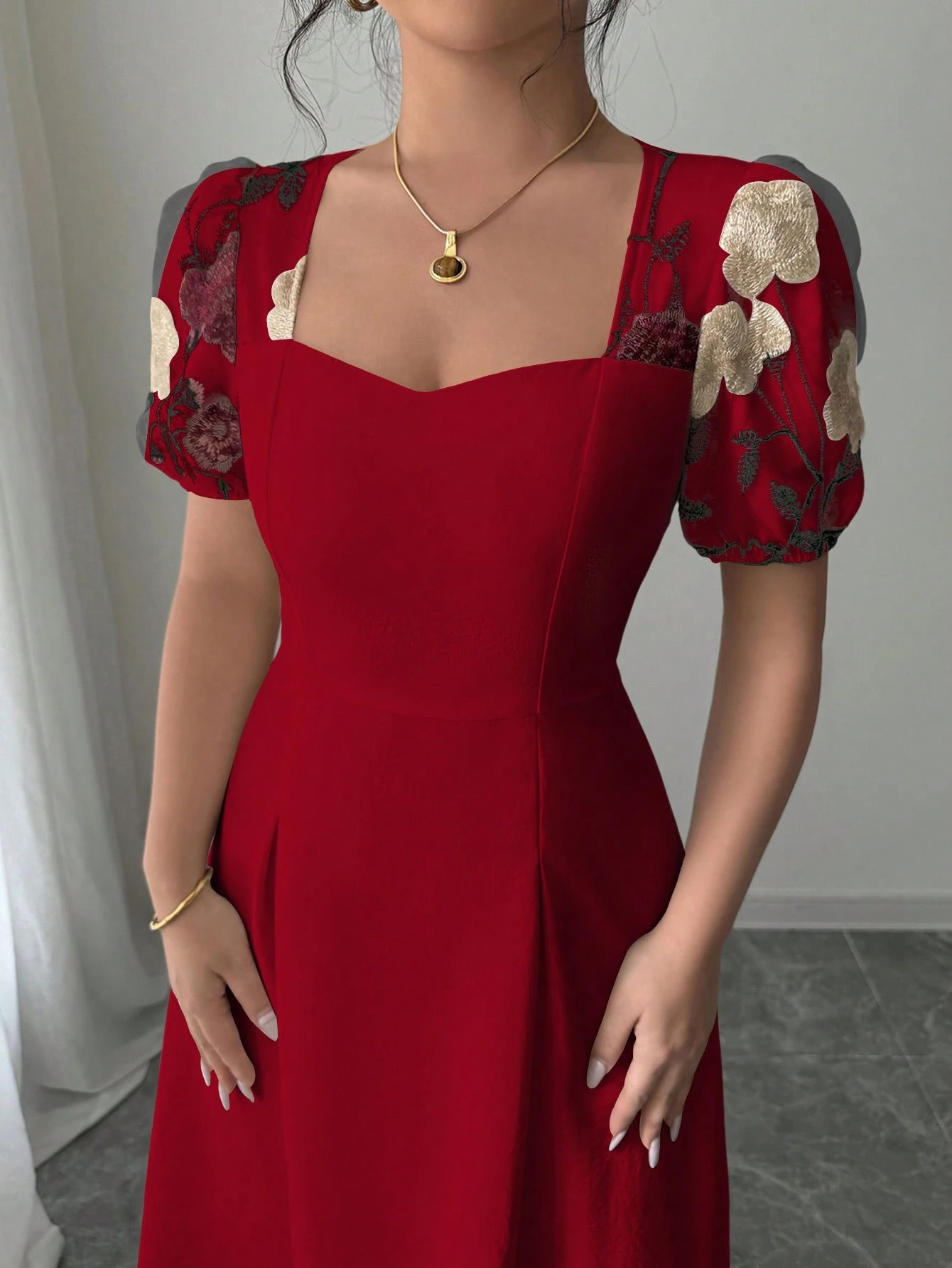 Vestido de mujer con cuello cuadrado, manga abullonada